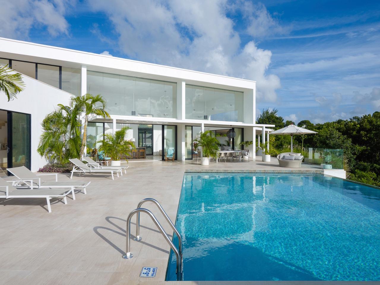 Atelier House, a contemporary 4 bedroom ridge-front villa with dramatic Caribbean Sea views. The modern living space was designed to maximize the breathtaking views with double-height living area and floor to ceiling glass windows and doors. The villa also has mezzanine-level study, large roof terrace and 4 spacious bedrooms. The master benefits from en-suite bathroom, glazed balcony and private covered terrace. The grounds include, wide terraces, infinity pool and half an acre of gardens featuring indigenous palms, lilies, bougainvillea and many flowering shrubs.