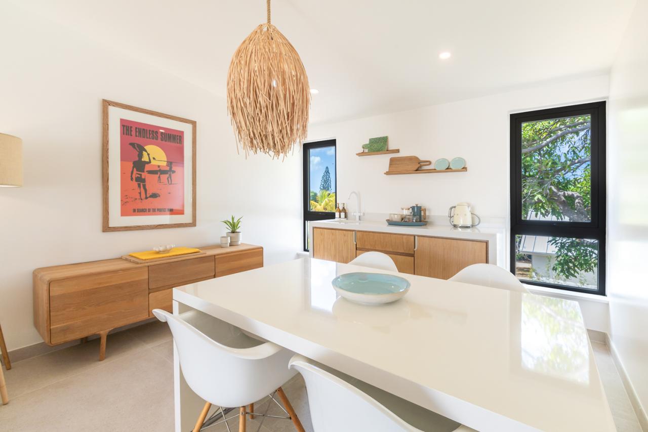 Flowing effortlessly from the outdoor oasis, the villa’s open-plan living area and modern kitchen blend sophistication with natural beauty. The kitchen is designed for both function and social connection, featuring a breakfast bar and a spacious dining area perfect for shared meals and gatherings. Meanwhile, the guest cottage serves as a private sanctuary, complete with its own living area and compact kitchen, offering added independence and comfort for visitors. Every element of Cloudbreak Villa has been carefully curated to deliver a seamless balance of tranquility, elegance, and modern convenience. With its serene setting, luxurious amenities, and breathtaking surroundings, Cloudbreak provides an exceptional escape where guests can relax, recharge, and create lasting memories in a truly idyllic environment.