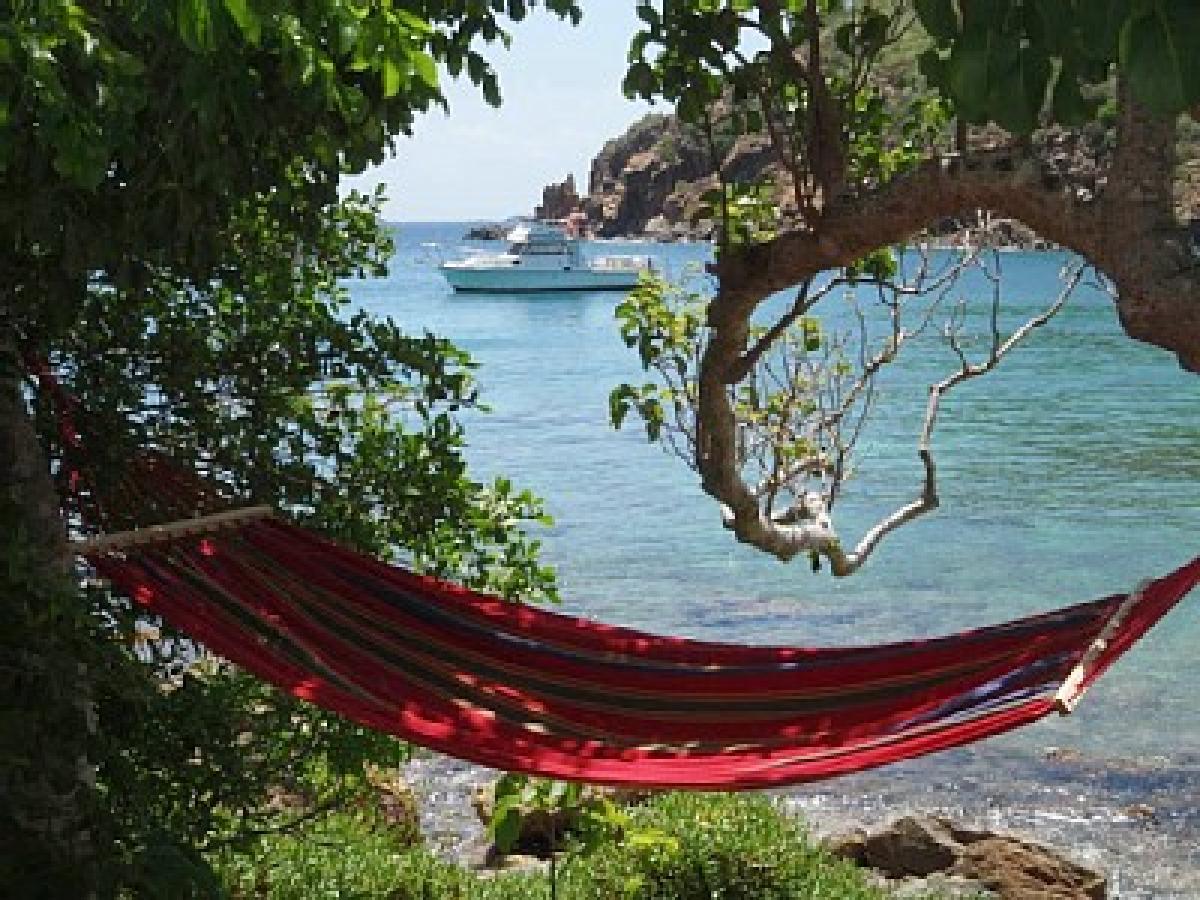 Beach Walk is a magical place most noted for quiet privacy right at the water's edge. Inside and outside of the 2,000 square foot villa, the lapping surf reminds you to take a look into the emerald waters just a few steps away. Snorkel and swim without ever leaving your villa. Colorful fish and coral reefs line this waterfront property. You can lay in a hammock, listen to the gentle surf, and sink into deep relaxation, or even come in from a delightful snorkel and retire to the hot tub, all without ever getting into a car. Inside Beach Walk you'll find the great room surrounded by glass to take in full views of the crystal clear water and Caribbean Sea beyond. Furnished in island style, Beach Walk is pleasantly decorated. The kitchen is well equipped including a pass through bar into the Great Room, all with full views of the water. Of course, the water is so close that even the slightest surf can be heard sending the senses into that relaxed state that only water sounds can provide. Both bedrooms and Great Room are air conditioned, or if you prefer, open all the large surround windows to enjoy the clean ocean breeze. Beach Walk is only five minutes away from beaches, shops, and dining. Just far enough to feel the privacy you find driving to the end of Chocolate Hole Bay and down a long winding driveway to the villa and the water. Beach Walk offers island living at its best.