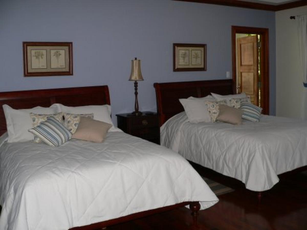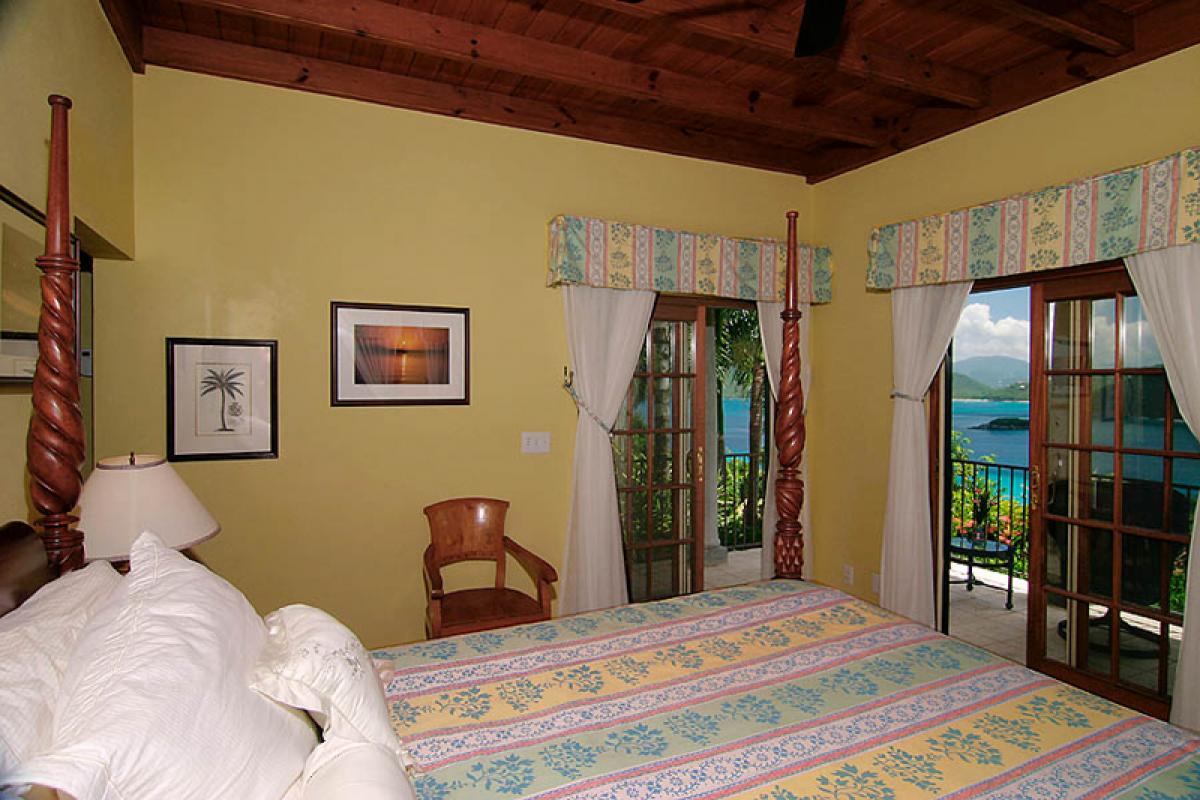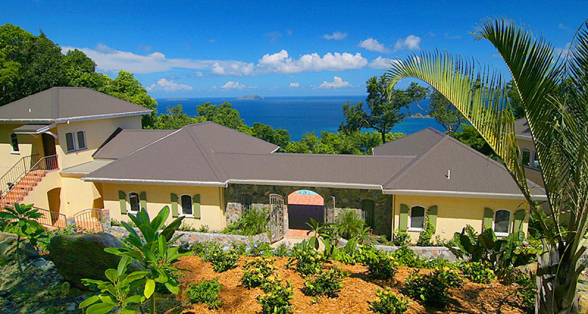 Coco de Mer, overlooking one of the most beautiful and dramatic ocean views in the world, is one of the Caribbean's most magnificent private villas. Designed in a Greco-Roman architectural style, Coco de Mer's palatial qualities are accented with grand Doric columns and an amphitheater that leads to a romantic semicircular 50 ft pool. Located at the exclusive gated community of Peter Bay Estate, Coco de Mer is appointed in 5 star elegance and surrounded by the majesty of pristine St. John beaches and tropical panoramas. Coco de Mer is secluded, private, and tranquil, yet only minutes away from Cruz Bay restaurants and activities. In the style of a Greek Amphitheater, Doric columns and grand archways lead to a 50 foot pool. As at Cinnamon Bay Estate the views from Coco de Mer are truly some of the most stunning views of natural, tropical beauty anywhere on St. John and anywhere in the world. Coco de Mer is located in the upper row of homes that stretches across the small north shore neighbor of Peter Bay. It's about a five minute walk from your villa to the white sands and turquoise waters of Peter Bay Beach. Peter Bay is one of the few parcels of pristine north shore land that was not deeded over to the National Park by Lawrence Rockefeller in the 1950s, and today it remains tranquil, peaceful, private and exceptionally scenic, surrounded on all sides by National Park forests, waters, and reefs. The Peter Bay gated community homes all have deeded access to the beach at Peter Bay, which is located between the National Park beaches at Trunk Bay and Cinnamon Bay, and is very similar to these world class, exceptionally beautiful beaches. The fine white sand and usually calm turquoise waters of this exquisite beach provide excellent swimming and good snorkeling. On a perfect beach day in February, the National park beaches will host hundreds of people, but it's rare to see even a handful of people on Peter Bay (it's privately owned). The gorgeous views from Coco De Mer look north and east and include the lush mountains of the north shore of St. John, Cinnamon, Maho and Francis Bays, Whistling Cay, and Great Thatch and Tortola in the British Virgin Islands. It's a five to ten minute, incredibly picturesque drive to the three restaurants at the acclaimed Caneel Bay Resort, and another five to ten minute drive to the captivating restaurants, shops, and groceries in the fun loving, delightful town of Cruz Bay. Coco De Mer is a spacious, 7000 sq. ft., beautiful estate house that consists of three buildings; a 2-level great house, a 2-level guesthouse to the west of the great house, and a private 1-level guesthouse to the east. Coco de Mer sits on .6 acres overlooking Cinnamon Bay and Francis Bay, allowing privacy and seclusion for up to five couples, and plenty of space for weddings and special event functions. Beautiful tropical gardens grace the Coco de Mer grounds. The walking trail to beautiful Peter Bay Beach, exclusive to the Peter Bay community, begins at the gardens below the pool. The peaceful, private, and exclusive Peter Bay location, and the overall commitment to a luxurious design and excellent fixtures, furnishings and equipment, makes Coco De Mer an exceptional rental villa that is certainly one of St. John's most exclusive. Peter Bay Estate, the gated community where Coco de Mer is located, is certainly among the most beautiful neighborhoods in the world.