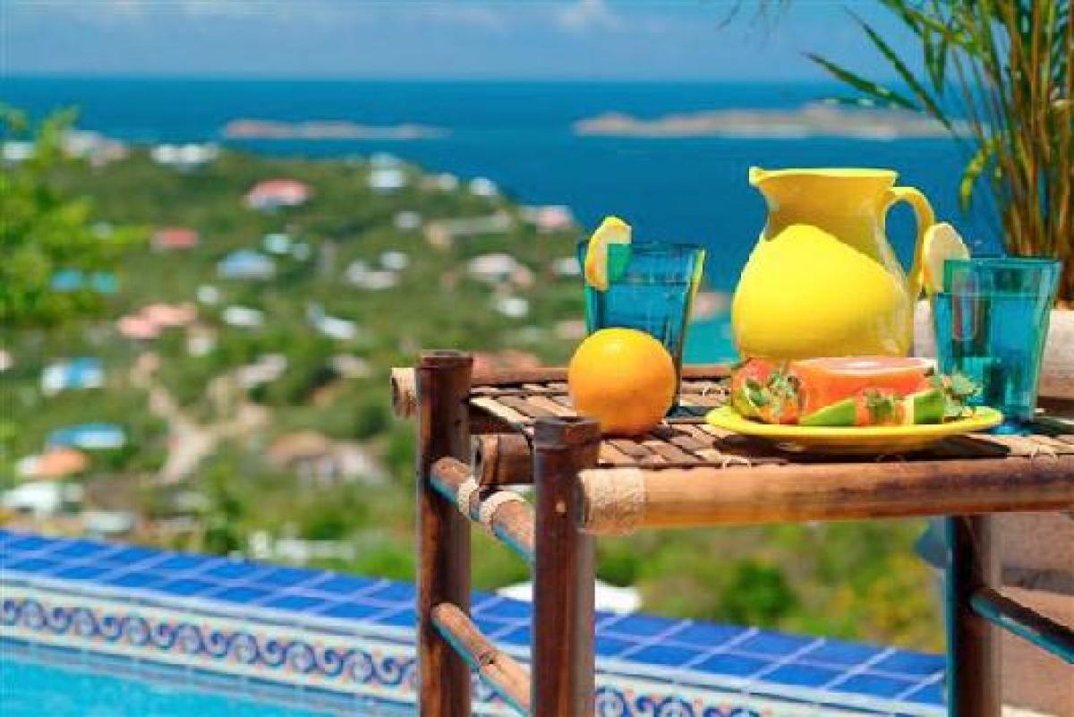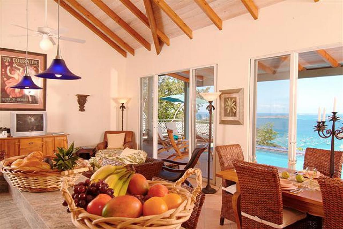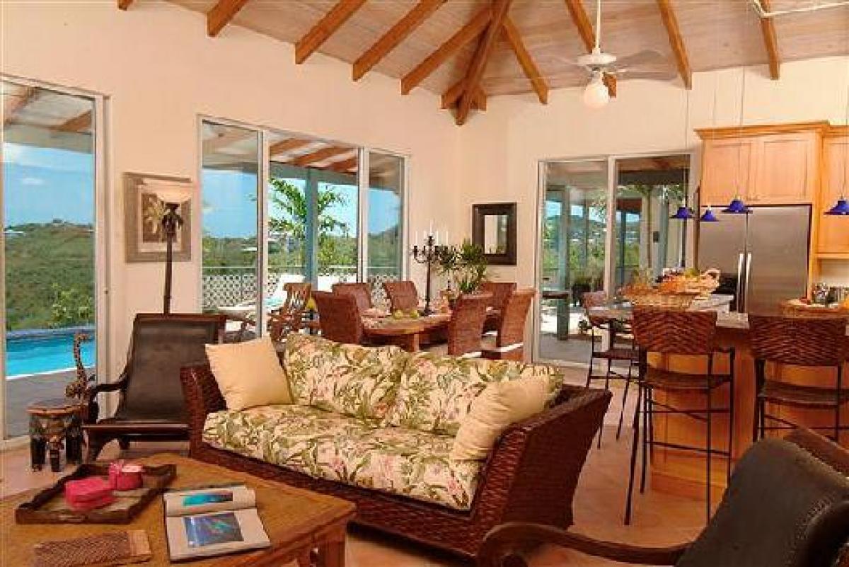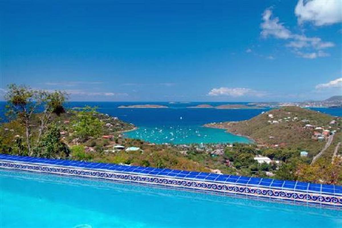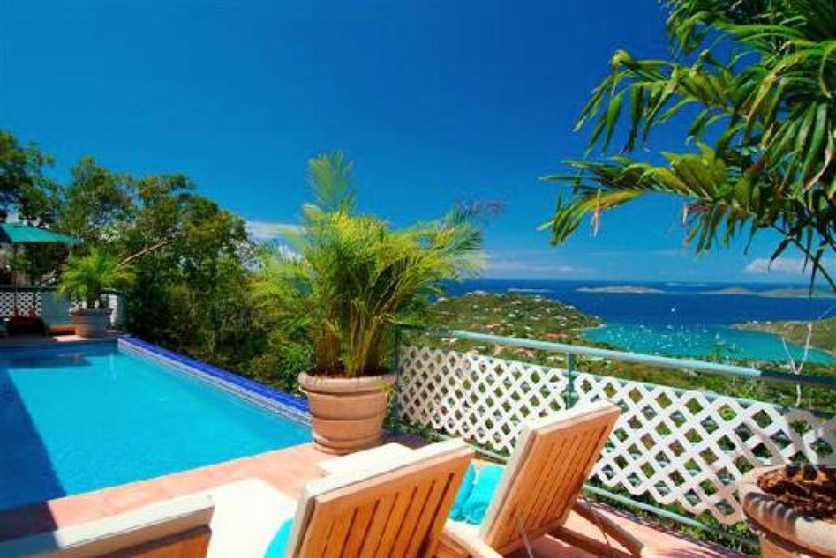 Coco Tier is perched high on an emerald hillside above the Caribbean Sea. This magical, new, four bedroom luxury home is the perfect place for your St. John vacation. Beautifully finished from the imported tile roof and copper gutter system, to the Mexican tile accents in the refreshing pool, this home has every luxury detail you'd expect. Located in the new, upscale and gated community of the Virgin Grand Estates, Coco Tier offers all the comforts of home with an elegant island twist. This wonderful home is fully air conditioned, offering comparable bedrooms with baths en suite, furnished with exotic teak and mahogany pieces from throughout the tropical world. The accompanying baths are spacious and attractive, with tumbled marble accents, and showers that open to the sea but still preserve your privacy.