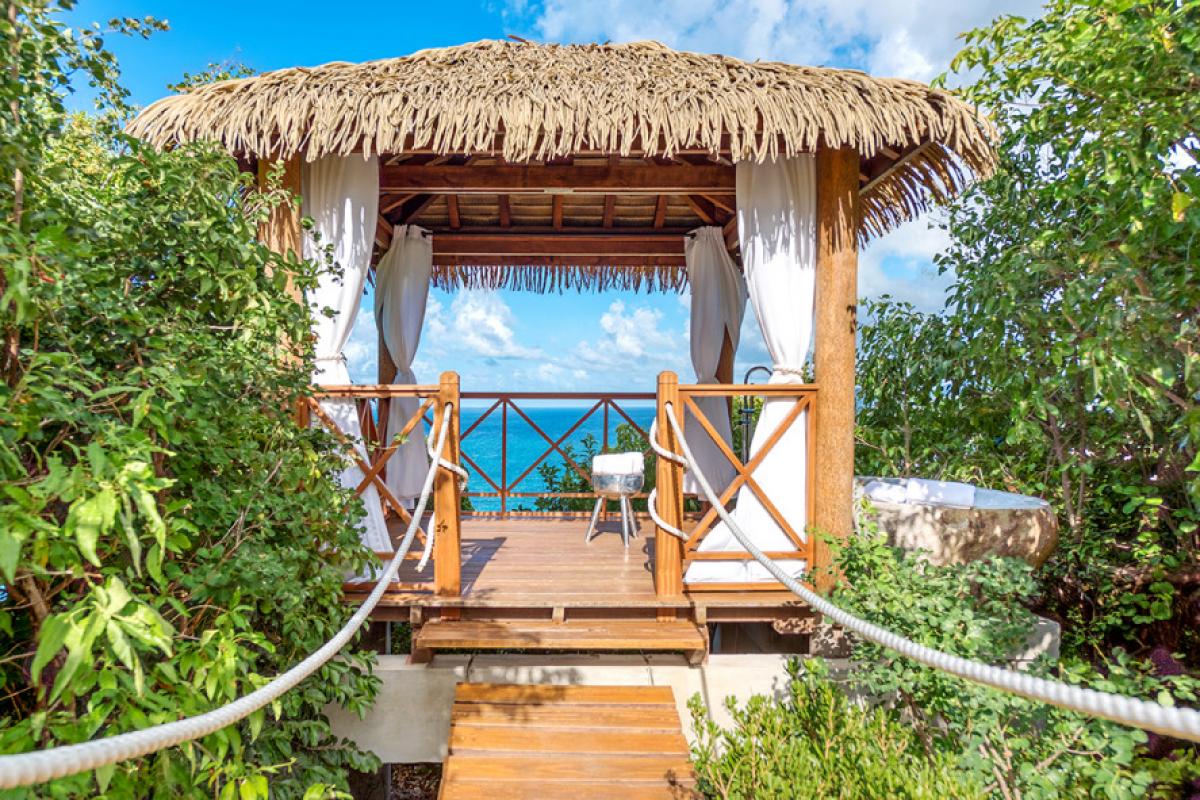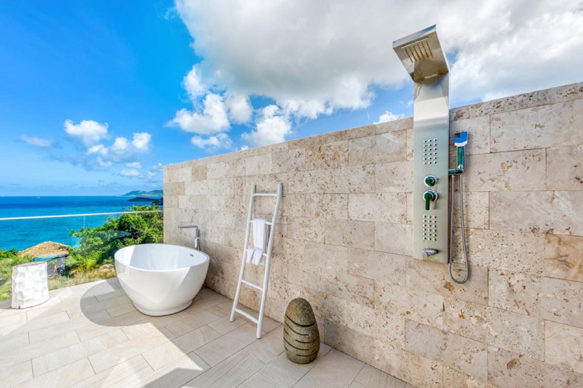 You are secluded, yet close to amenities. The fabulous restaurants and food purveyors in Baie Nettle are a few minutes’ drive. You are 8 minutes to the French capital of Marigot, with its shops, restaurants, markets and galleries and 10 minutes to the airport. Grand Case and Philipsburg are 30 minutes away.