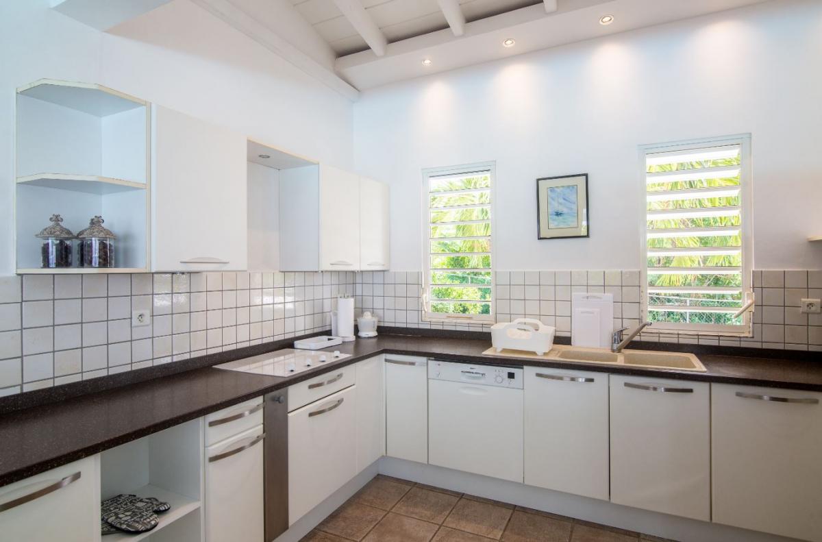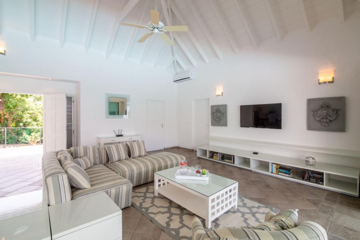 The living room has satellite TV, stereo and piano and opens directly onto a terrace with large salt water pool and gazebo and outside dining and seating area. The 3 bedrooms each have en-suite bathrooms and air conditioning. Just a 5-minutes drive from two of St. Martin's most beautiful beaches, Baie Longue and Plum Bay, Villa Callisto is the perfect Caribbean retreat.