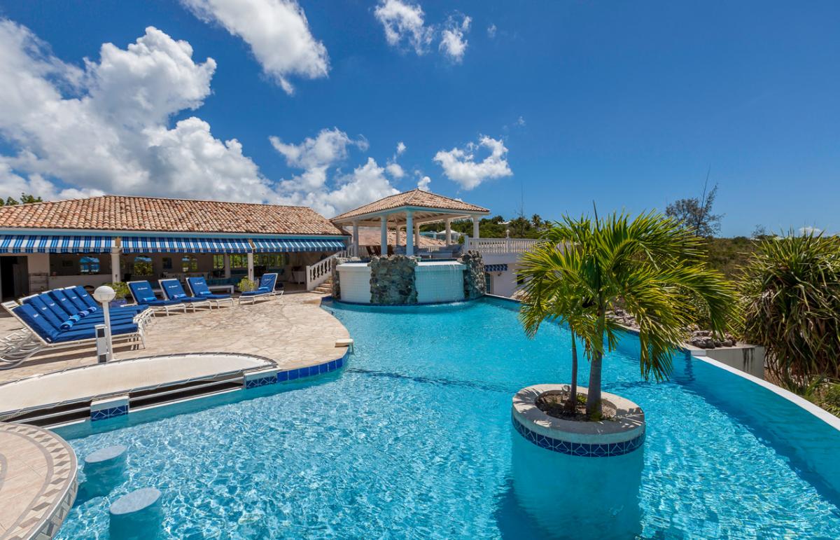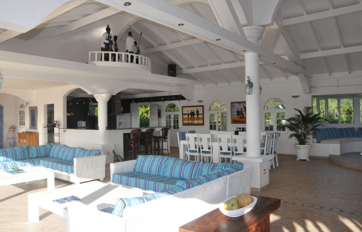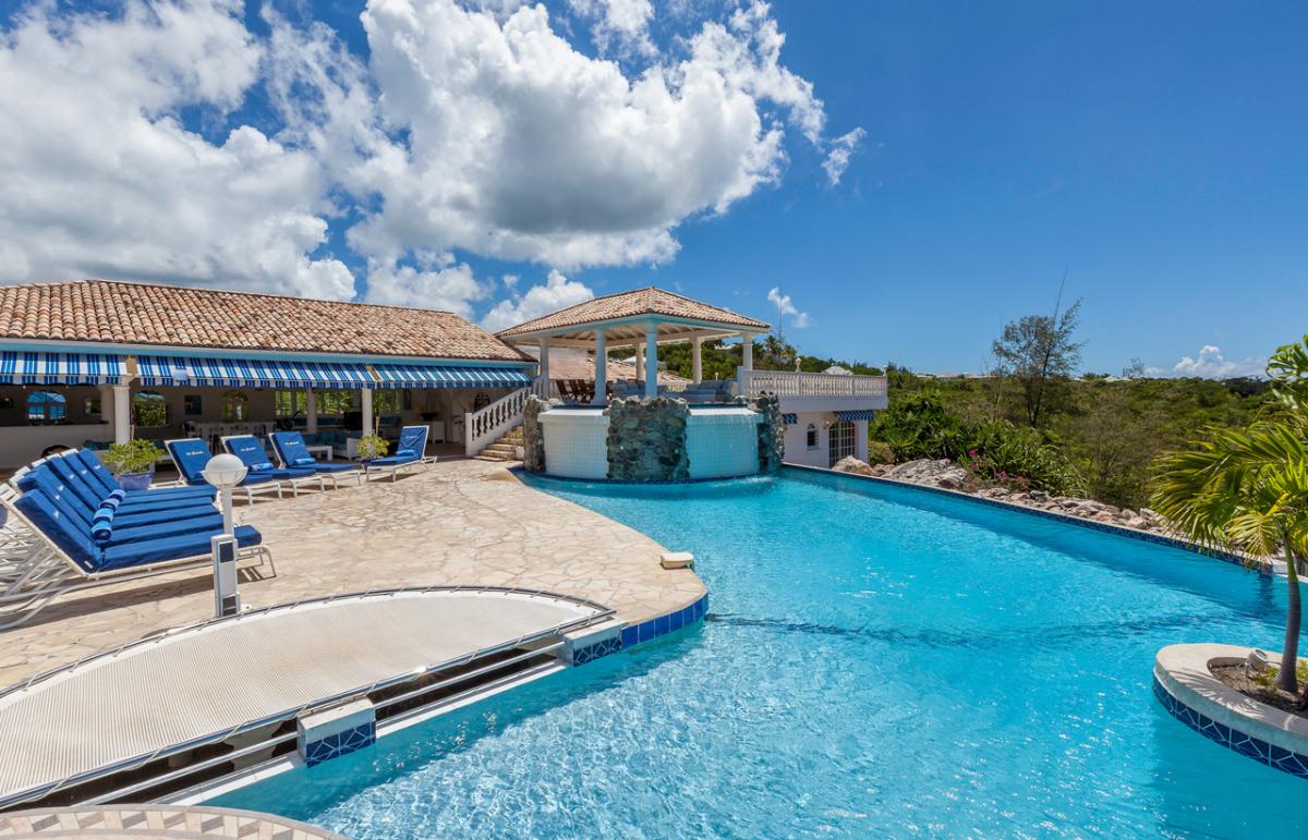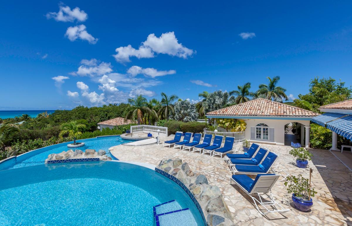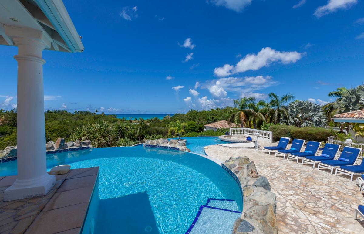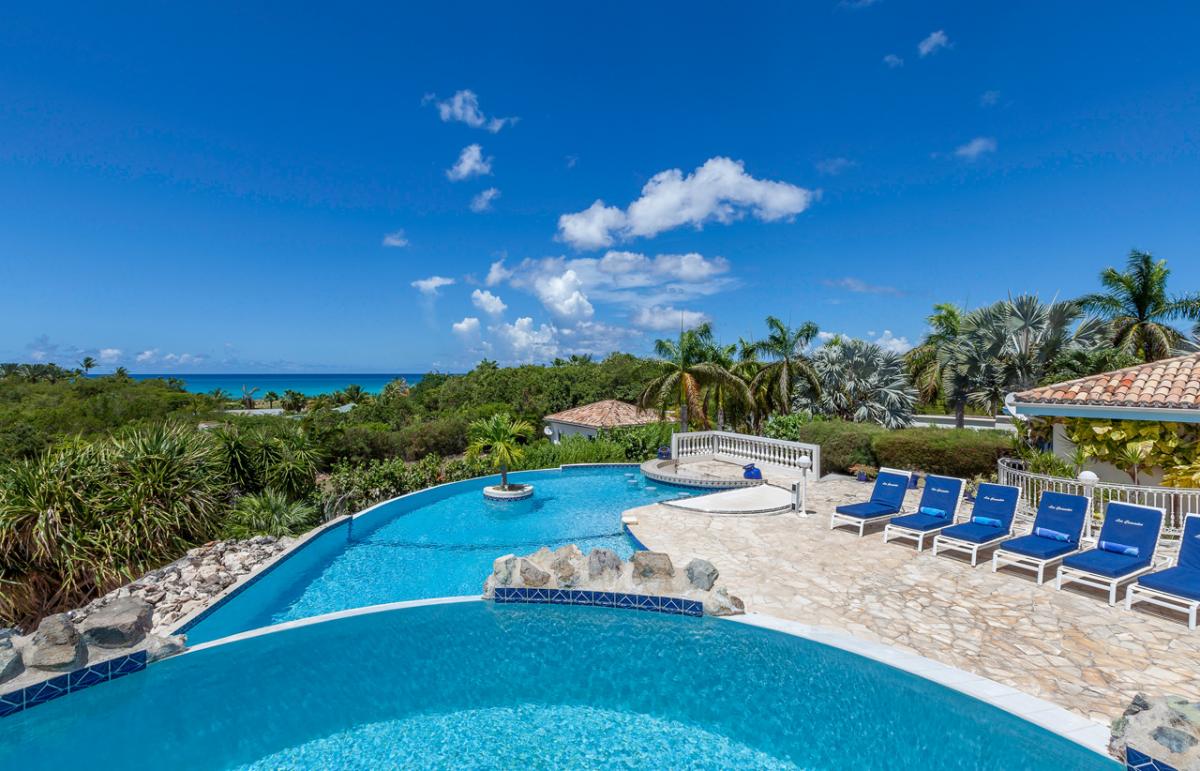 Cascades is a spacious 6 bedroom, 6 bathroom villa overlooking Plum Bay with a cascading pool and extensive two-level terrace providing ample space for lounging and outdoor living. The generous airy interior spaces include a spacious living room with a TV viewing corner and a dining area extending directly out to the terrace for gorgeous sunset views over the Caribbean.