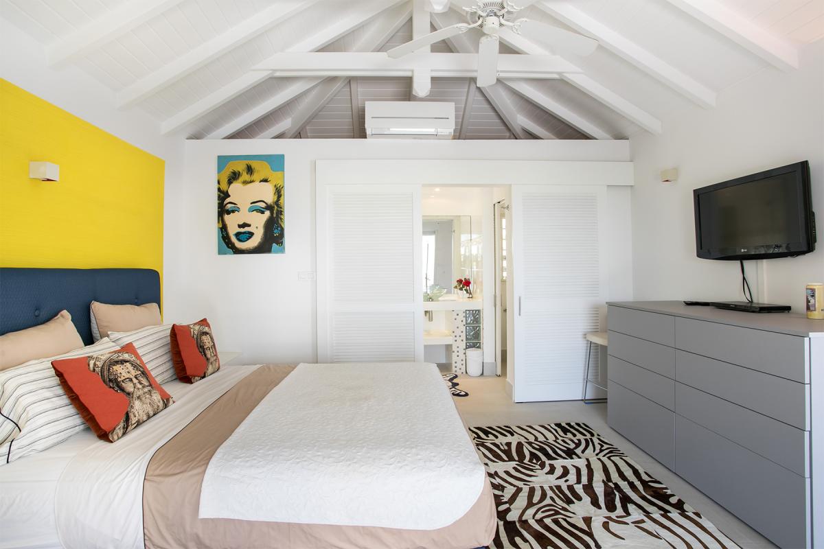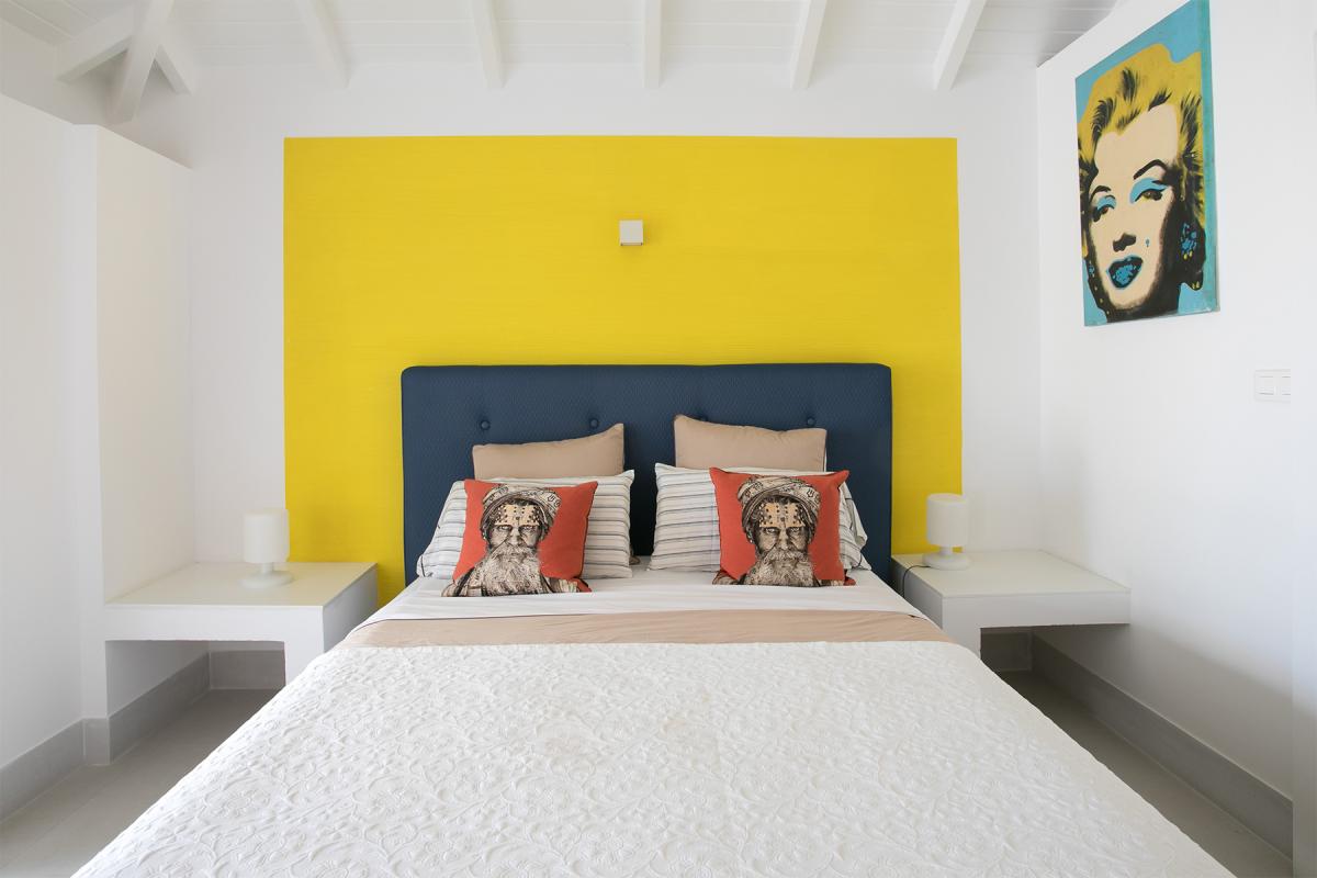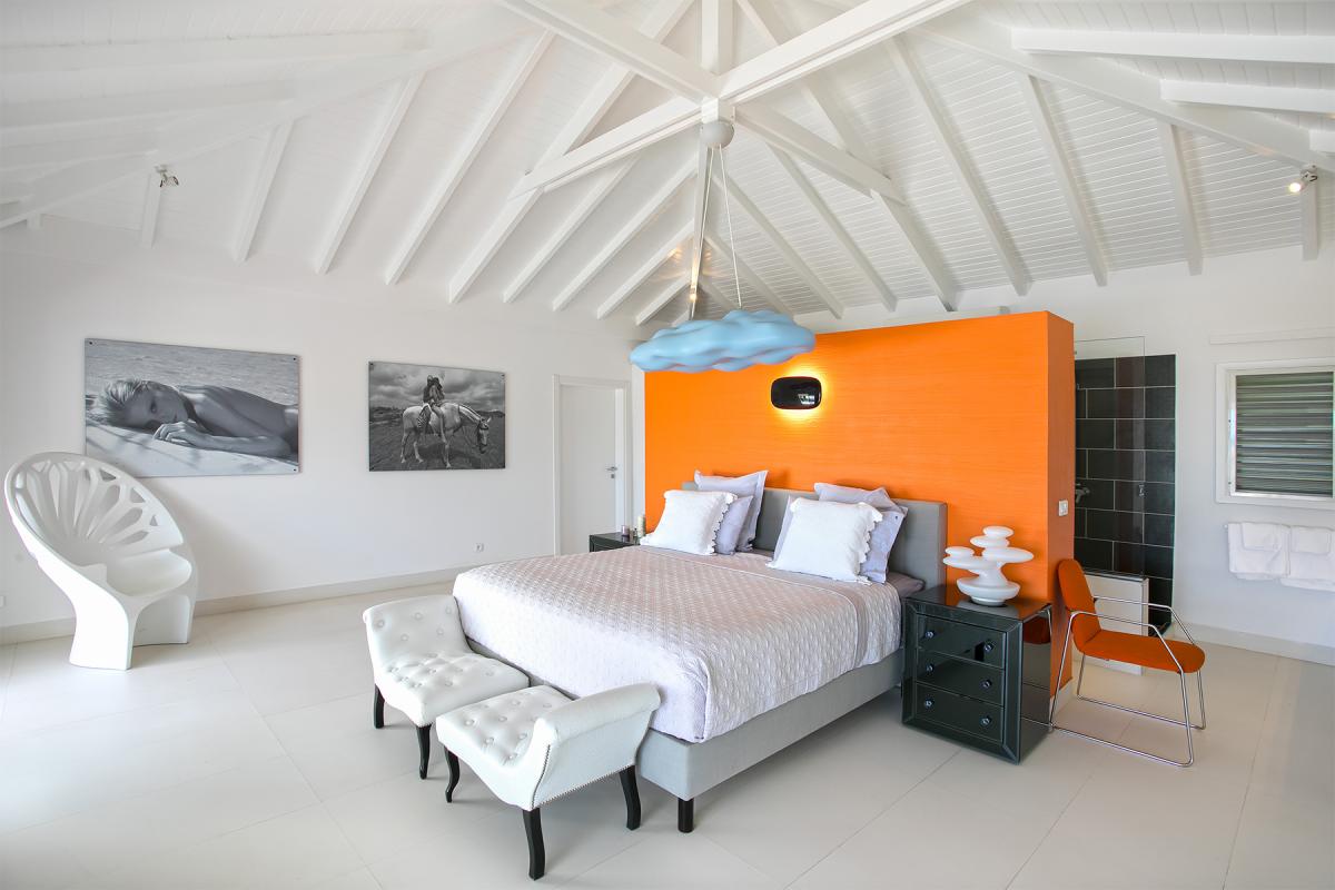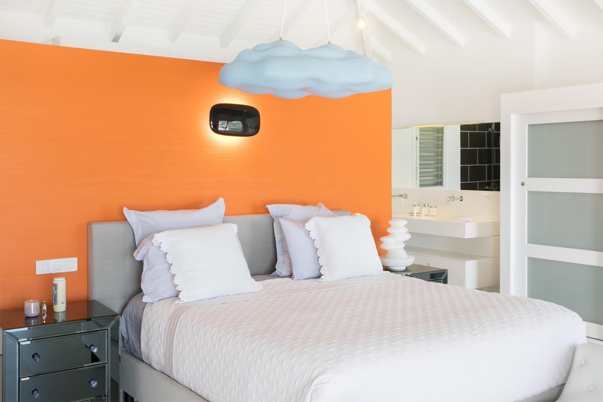 The three king size bedrooms have air-conditioning and access to the pool terrace. Each room has its own color accent of plum, lemon yellow and orange, contemporary art and luxurious en-suite bathrooms with chic Italian stone tiling.