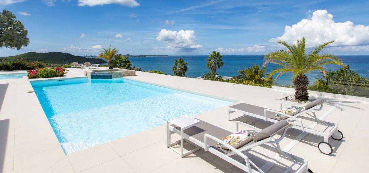 Nestled in a protected and very private tropical paradise is Dreamin’ Blue, a unique and luxurious villa. The views are stunning, overlooking the tranquil Happy Bay Beach which is only a five minute walk away, and the fabulous beach restaurants of Friar’s Bay. It is heaven here, blessed with every shade of blue from sky to Caribbean Sea.