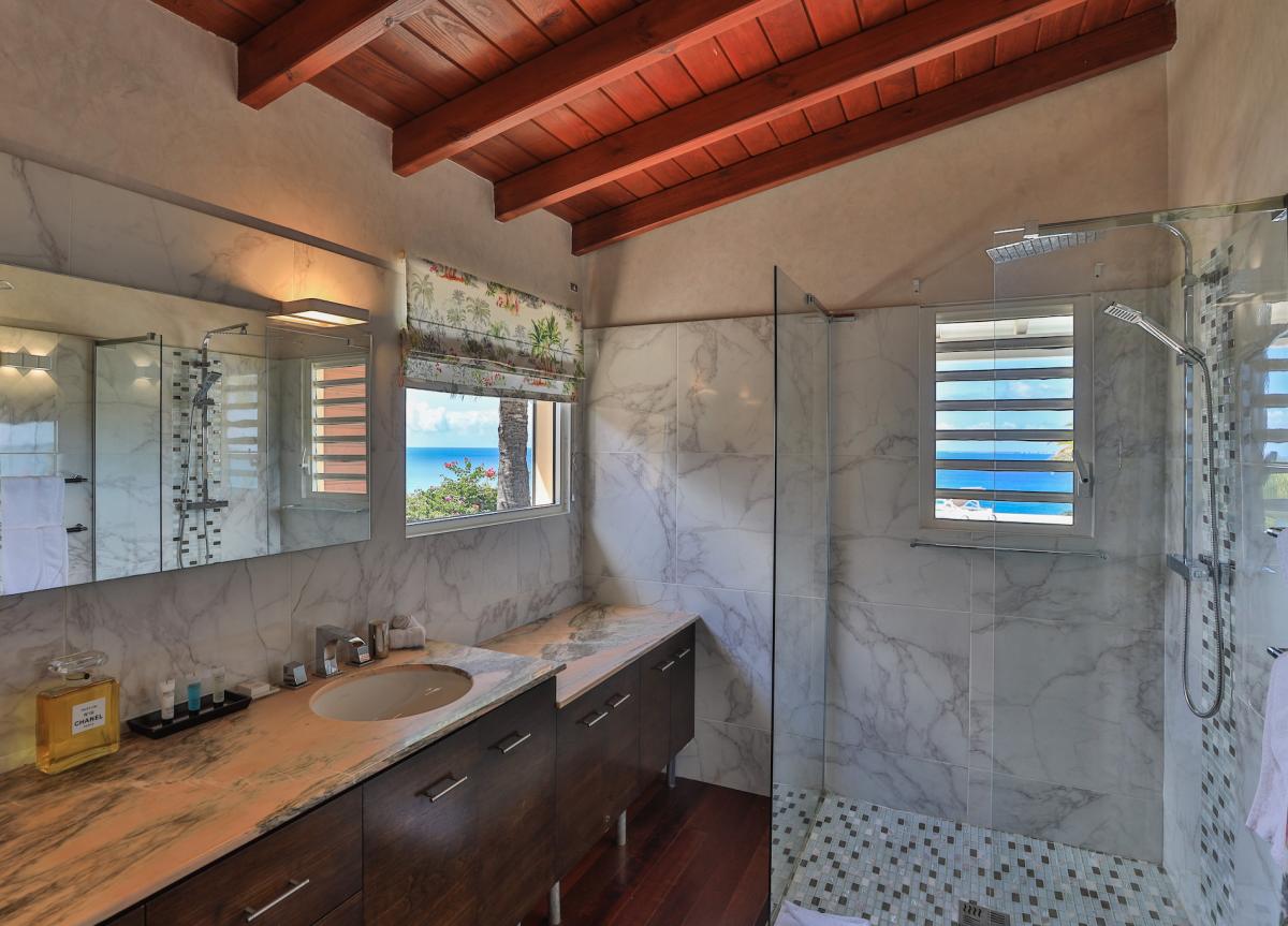 Although secluded, you are close to amenities. You are a five minute stroll to the beach and Friar’s Bay restaurants. By car, you are a few minutes from the gourmet food capital of Grand Case as well as Hope Estate. In 15 minutes you arrive in Marigot and in 25 at the airport or Phillipsburg.
