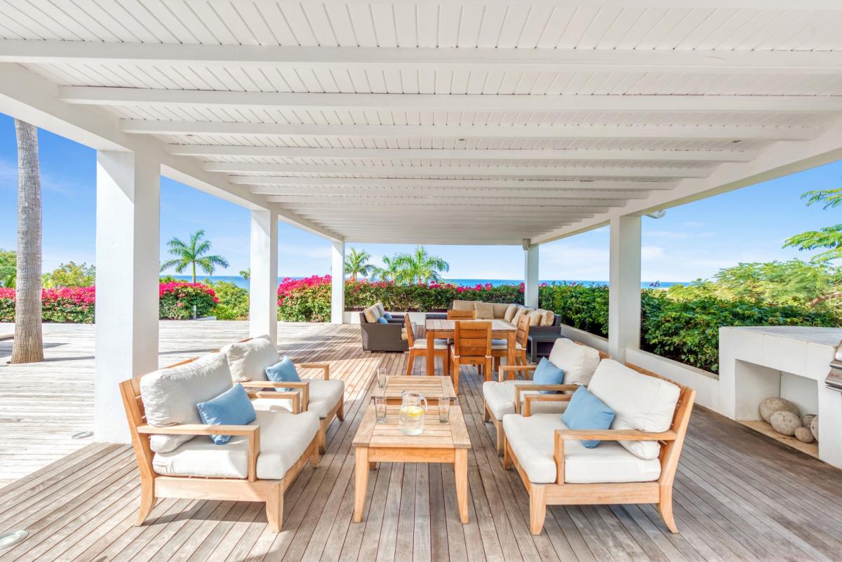 Beautifully designed gardens surround the house and terraces. Epi wood decks on multi levels offer endless options for dining, lounging and sunning. You can be private or together with your friends or family. The upper deck flows off the main indoor living area. Under wide covered gazebos, you can lounge, dine or fire up the barbeque. Step down to the gorgeous lower level for a swim in the inviting pool surrounded by covered terraces and sundecks. There is a separate kid’s playground for the young ones.