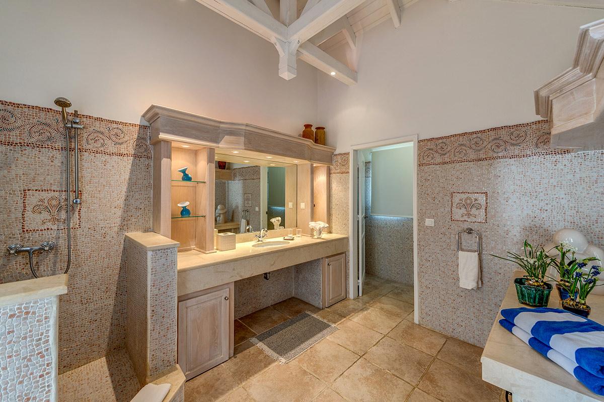 La Bastide combines a contemporary attitude with the exoticness of Moroccan design, perfectly suited to Caribbean lifestyle. Through the gates, you arrive in a private tropical paradise. Lush gardens and beautiful columned entry welcome you into a stylish villa with a breathtaking view. As your eye wanders through the cool interiors to the covered terrace, your eye draws you to the azure Caribbean Sea and brilliant blue sky. Between the interior and sea is a fabulous, very unique double pool that combines a large horizontal infinity pool set with a beautiful oversized vertical lap pool that almost disappears into the sea. Surrounding this oasis is a glorious garden filled with palms, tropical shrubs and flowers.