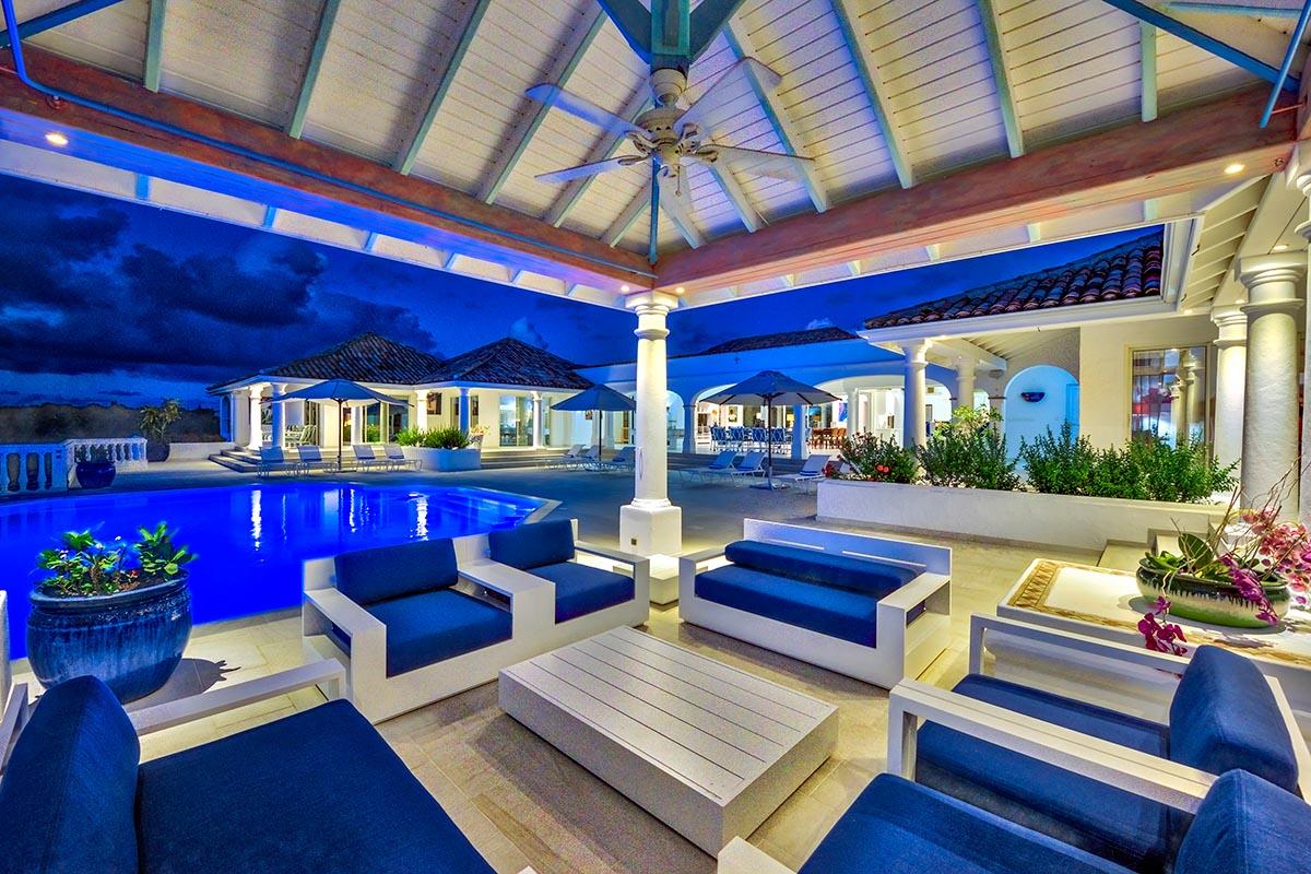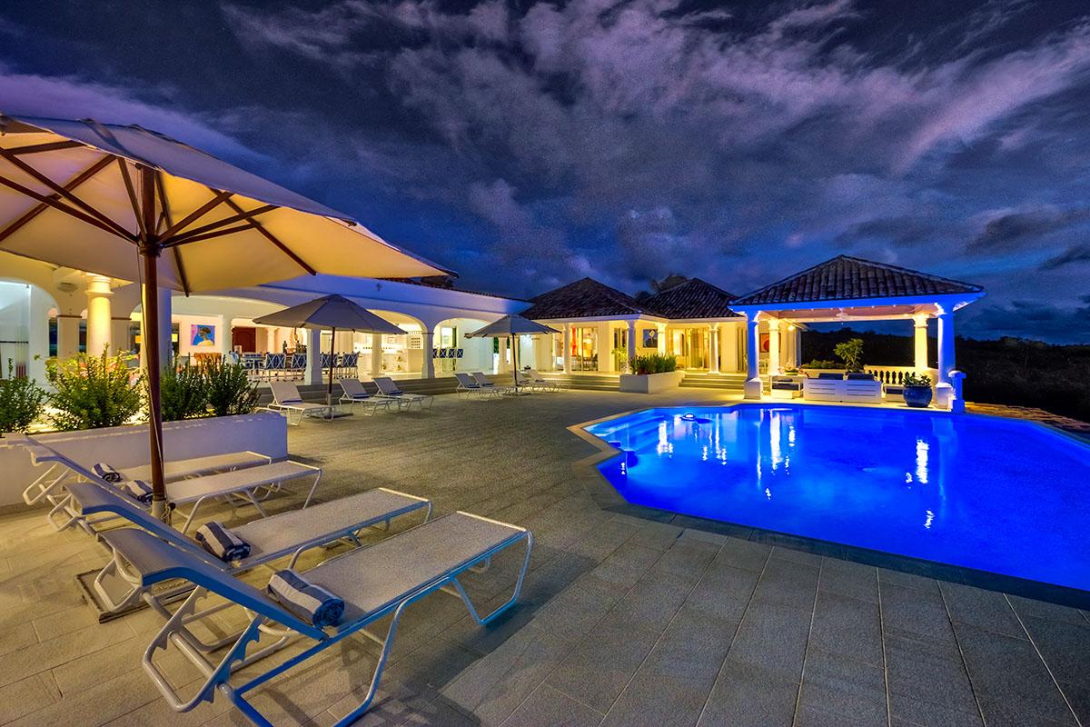 La Bella Casa is a charming Caribbean estate surrounded by lush tropical gardens and sprawling green lawns. The views overlooking elegant La Samanna Hotel, Baie Longue Beach and the deep blue Caribbean dazzle morning to night. Sunsets are magical paintings in hot pinks and orange; a colorful backdrop for cocktail hour. Featuring 9 bedrooms, the villa is a perfect setting for large families, groups of friends or weddings. Although spacious, it has an intimate feel. You can be together or quite private.