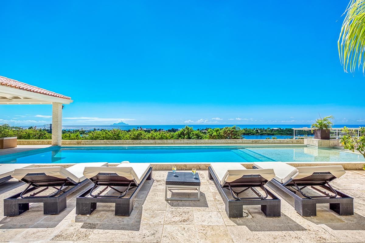 La Favorita’s view dazzles the moment you enter the villa. Your eyes flow from the cool interior out to a stunning collection of blues. The horizon unites the cerulean pool and sapphire Caribbean with the rich azure sky.
