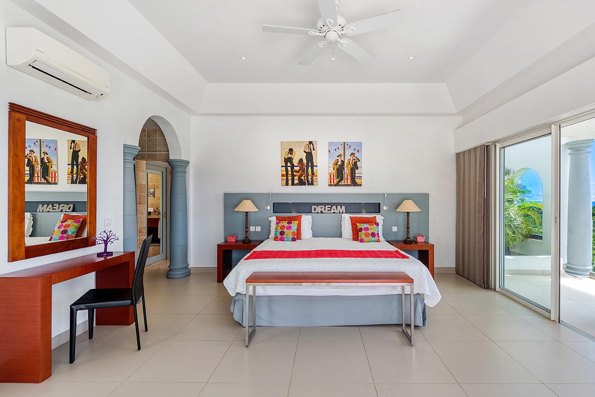 - Bedroom 4: King bed, en suite bathroom with shower, al fresco shower, TV, AC, ceiling fan