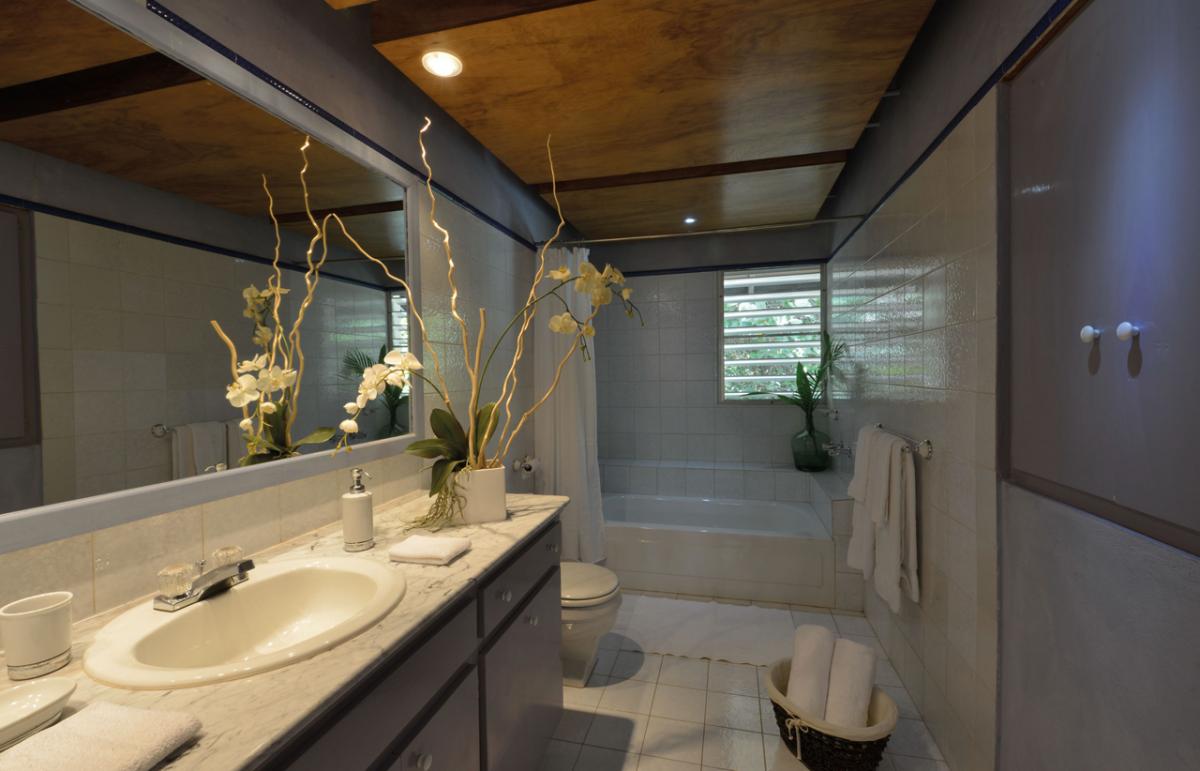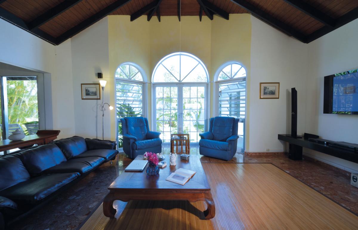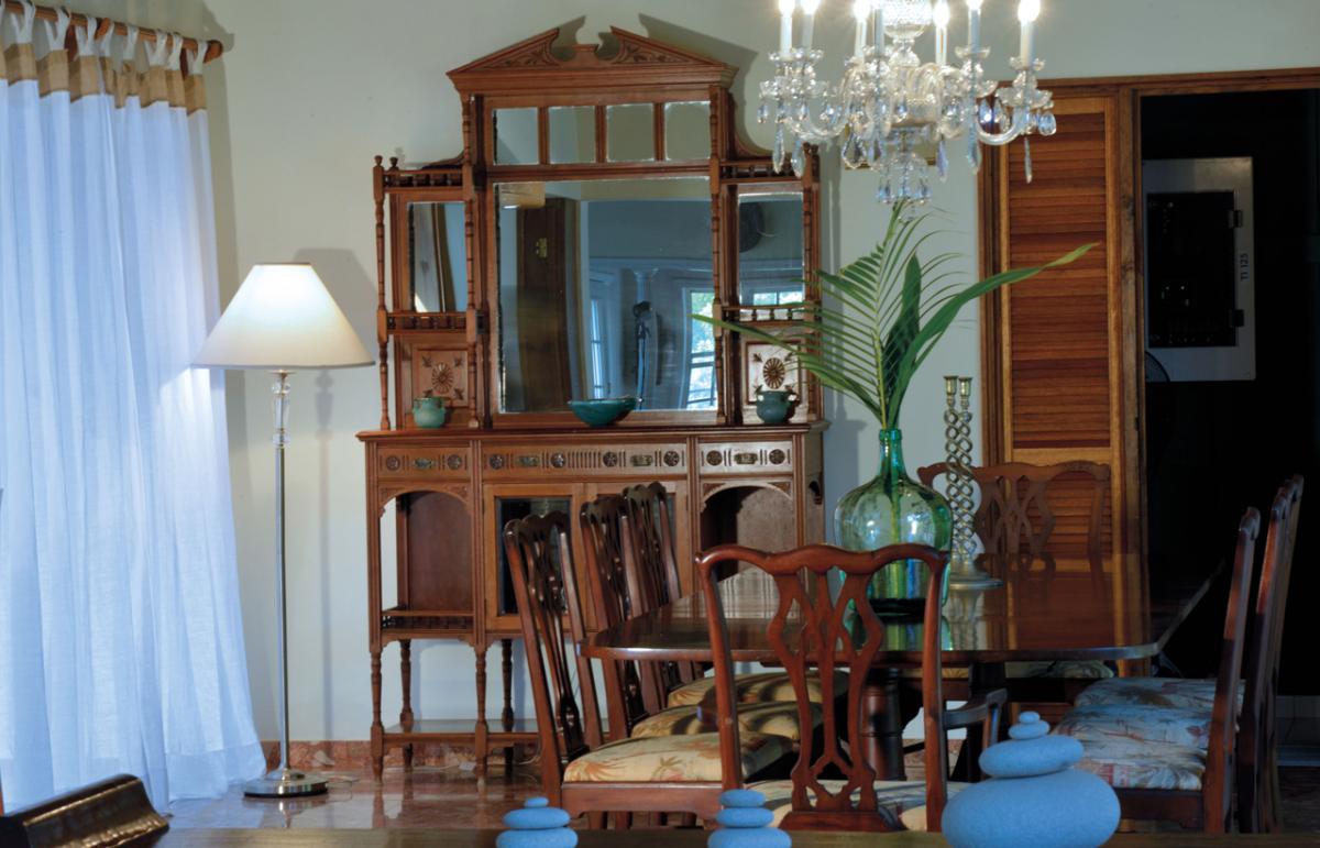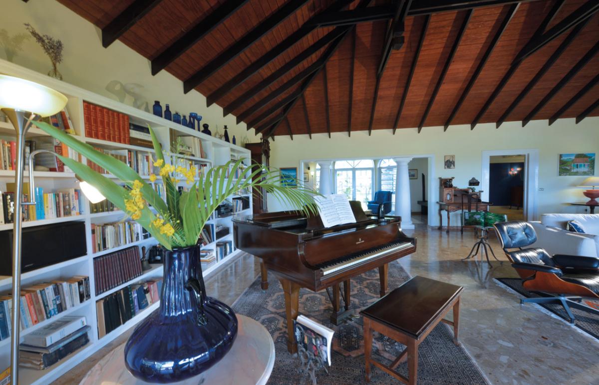 The marble floored house features a tasteful blend of antique and modern furniture. The spacious living room has a baby grand Steinway piano and opens up to the terrace through a 24 ft. roll away glass sliding door. The bedrooms have original antique four poster beds, all of which are king size.