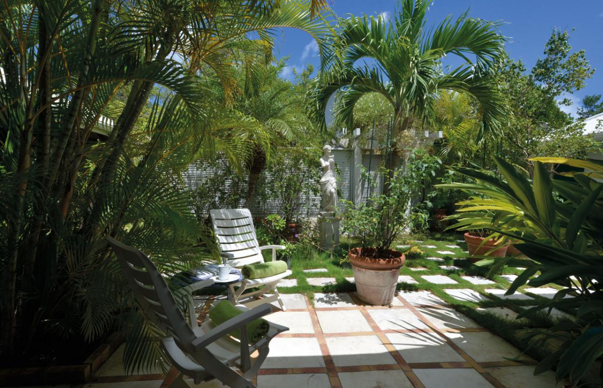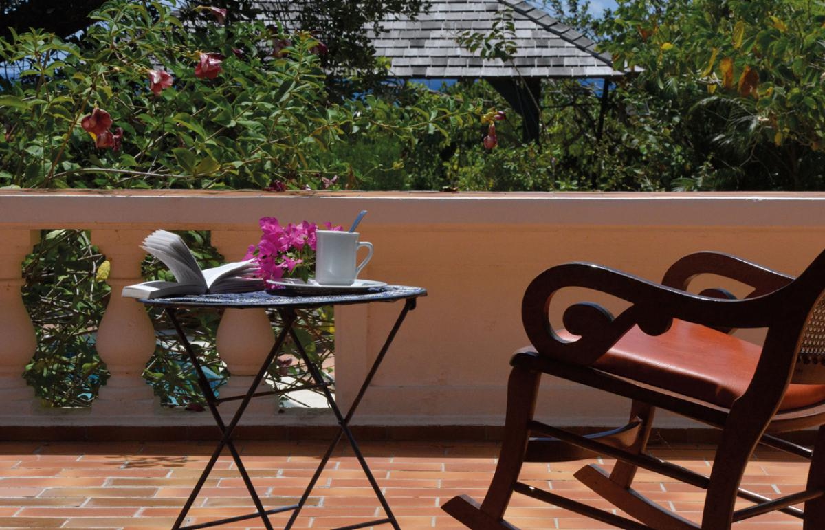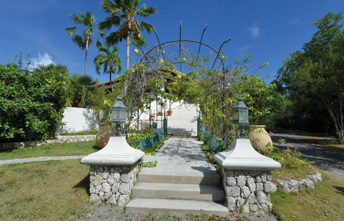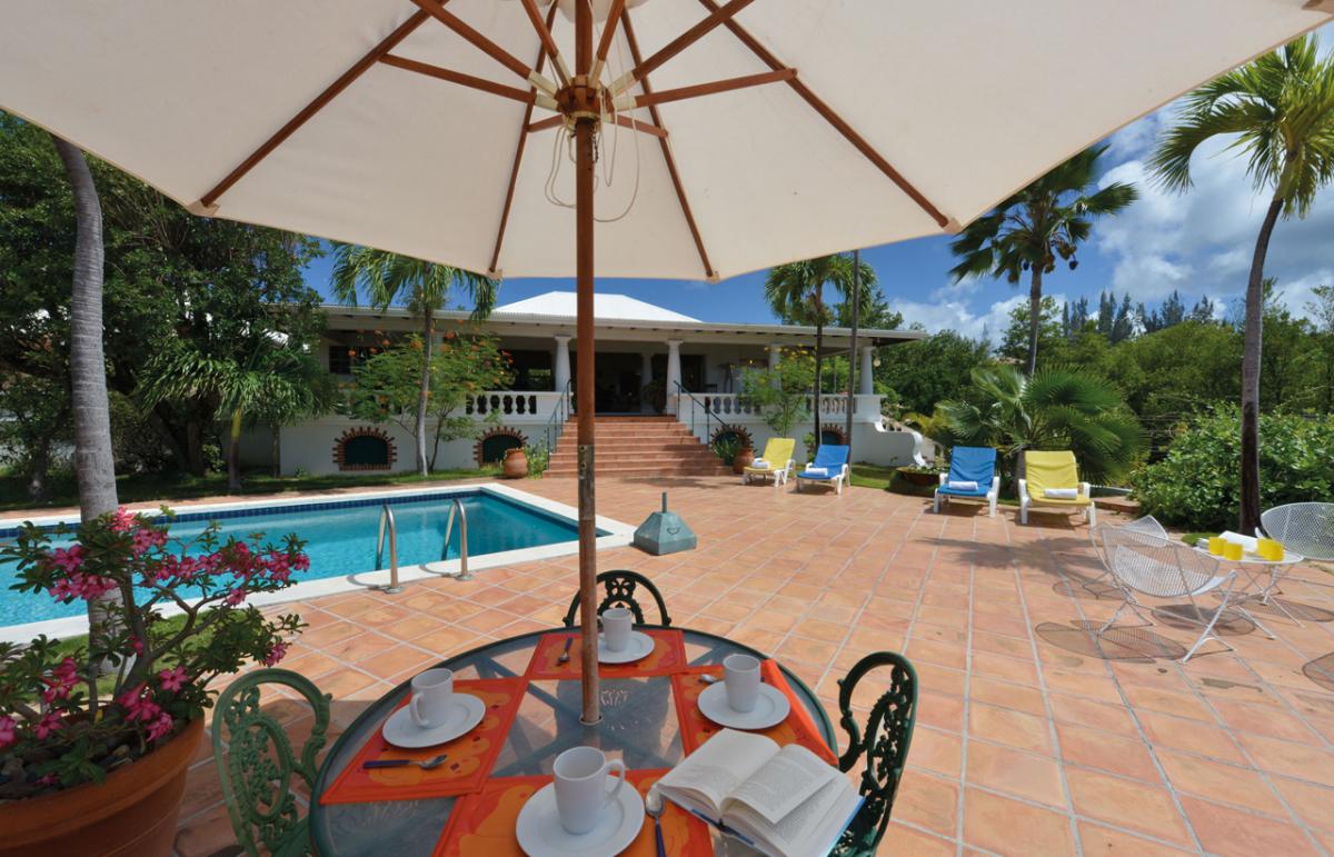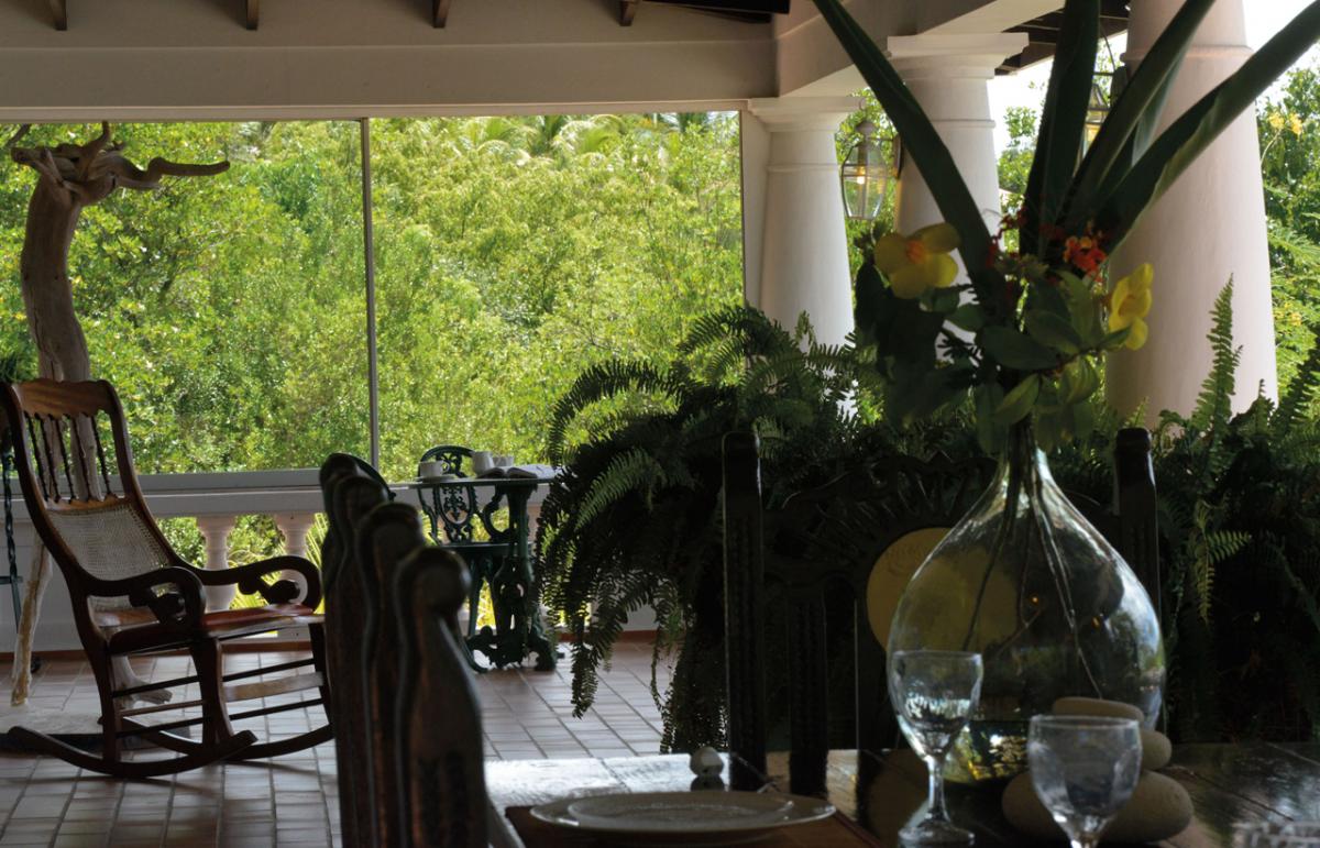 Villa Les Zephyrs is an elegant colonial West Indian style home built in a U-shape around a flowered interior courtyard and overlooks the Caribbean Sea with views of the islands of Saba and St. Eustatius and in the foreground, La Samanna Hotel and the Baie Longue Beach area.