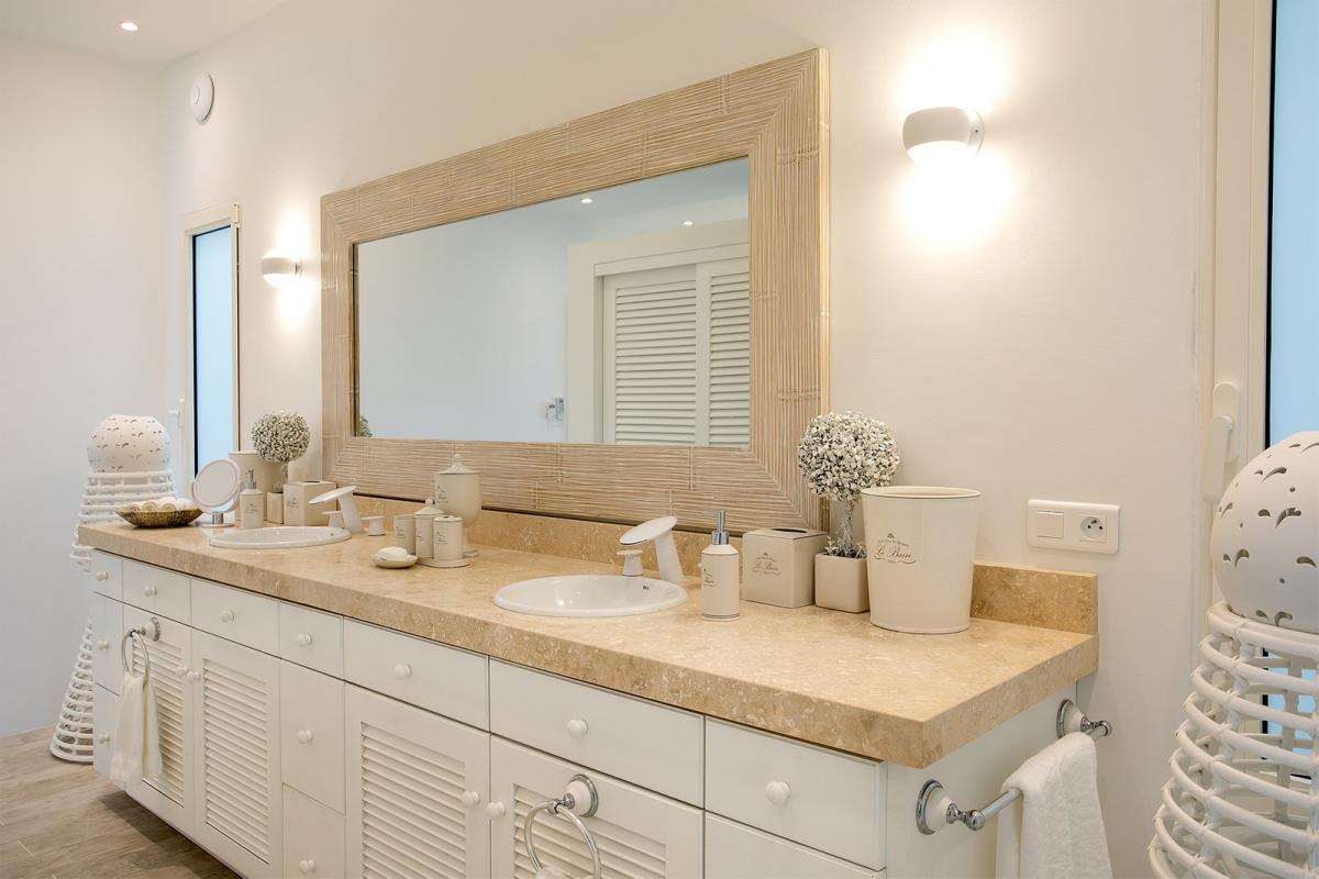 The main entrance invites guests into a domed reception area and large double doors lead to the grand living area. High ceilings and natural stone floors create a cool and refreshing contrast to the tropical climate outdoors. The living area makes the most of the cooling ocean breezes, the entire room also benefits from air-conditioning if desired. L'Oasis also offers comfortable lounge areas, a large indoor dining table with seating for 10, and an adjoining media room with a widescreen TV, surround sound, and more seating. There is wifi throughout the entire property.