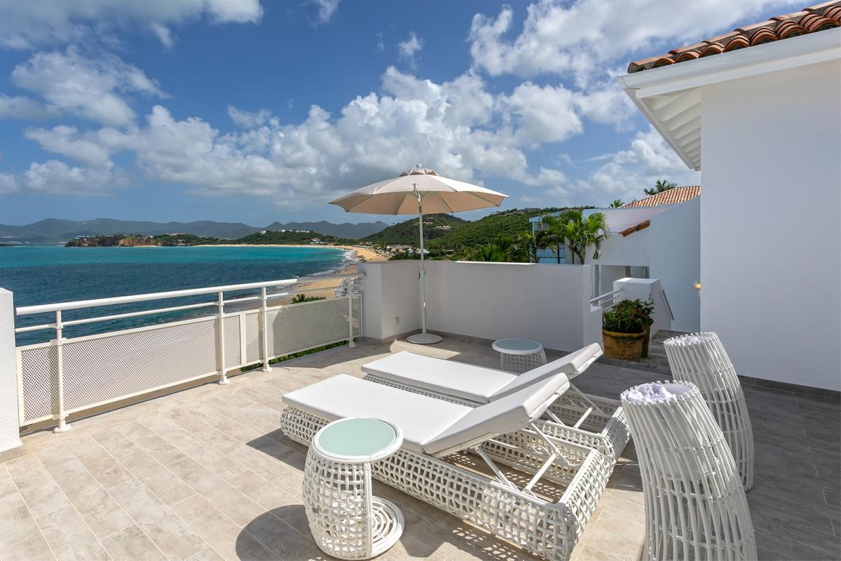 At the far end of Baie Rouge, one of St. Martin’s most sought after beaches, villa L'Oasis sits alongside the cliffs offering incredible sea views and luxurious surroundings. Built on three levels, following the incline of the cliff, this elegant and sophisticated beachfront home has six bedrooms, including 3 master suites and two beautiful pools, one at shore level and a second overflow pool on the main residential level.