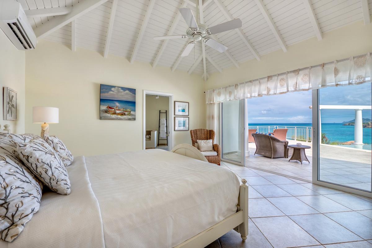 - Bedroom 2: King bed, private bathroom with shower, AC, ceiling fan, TV