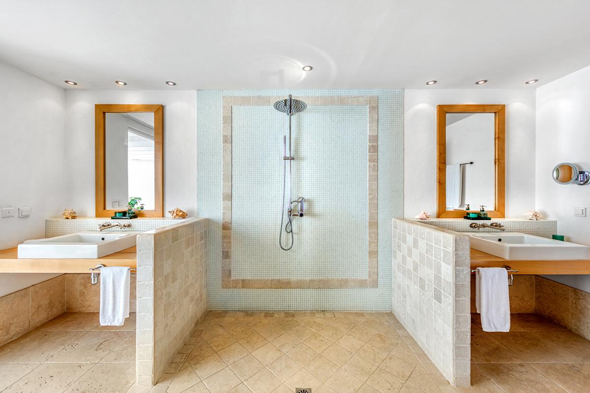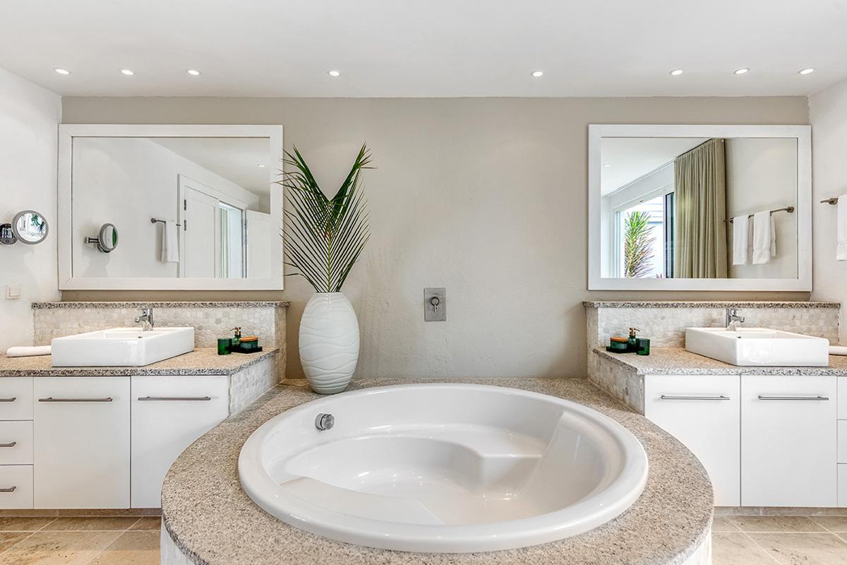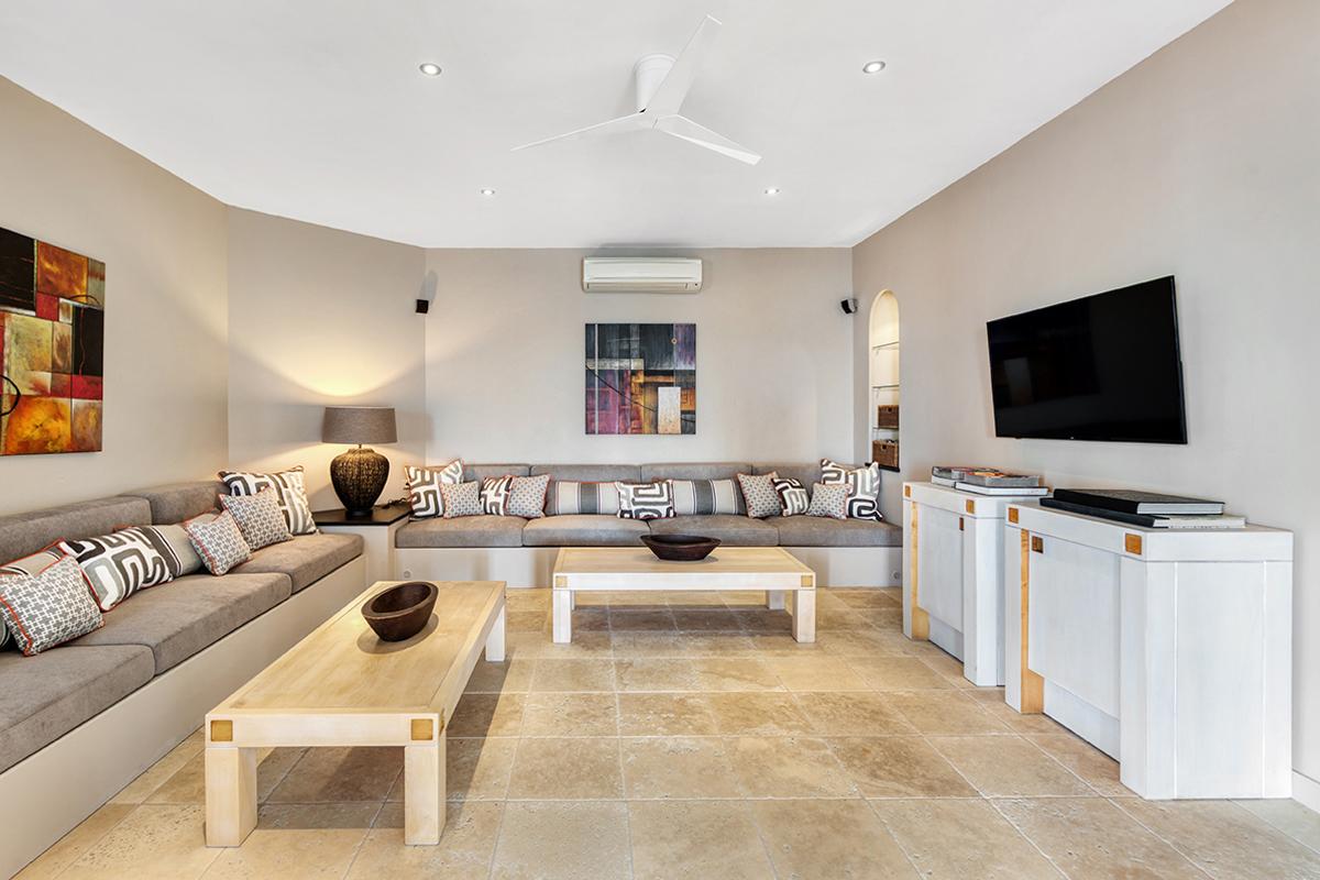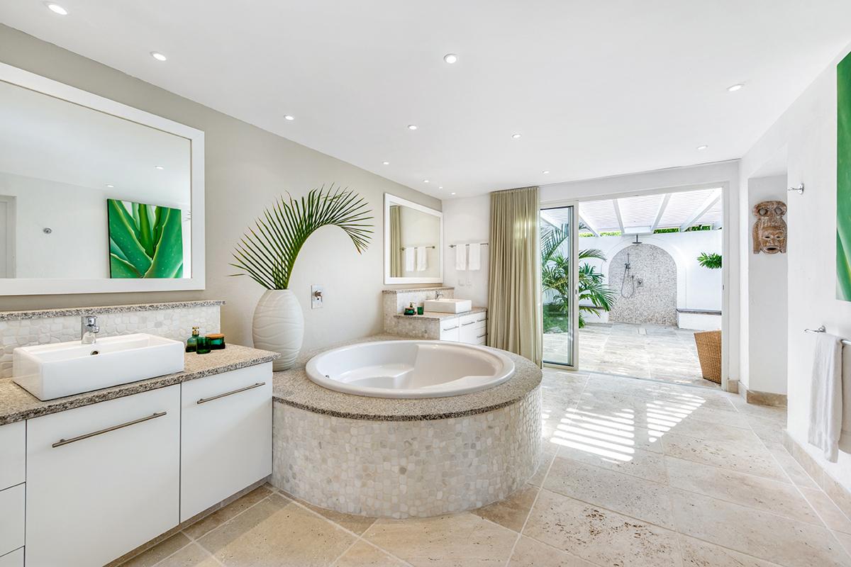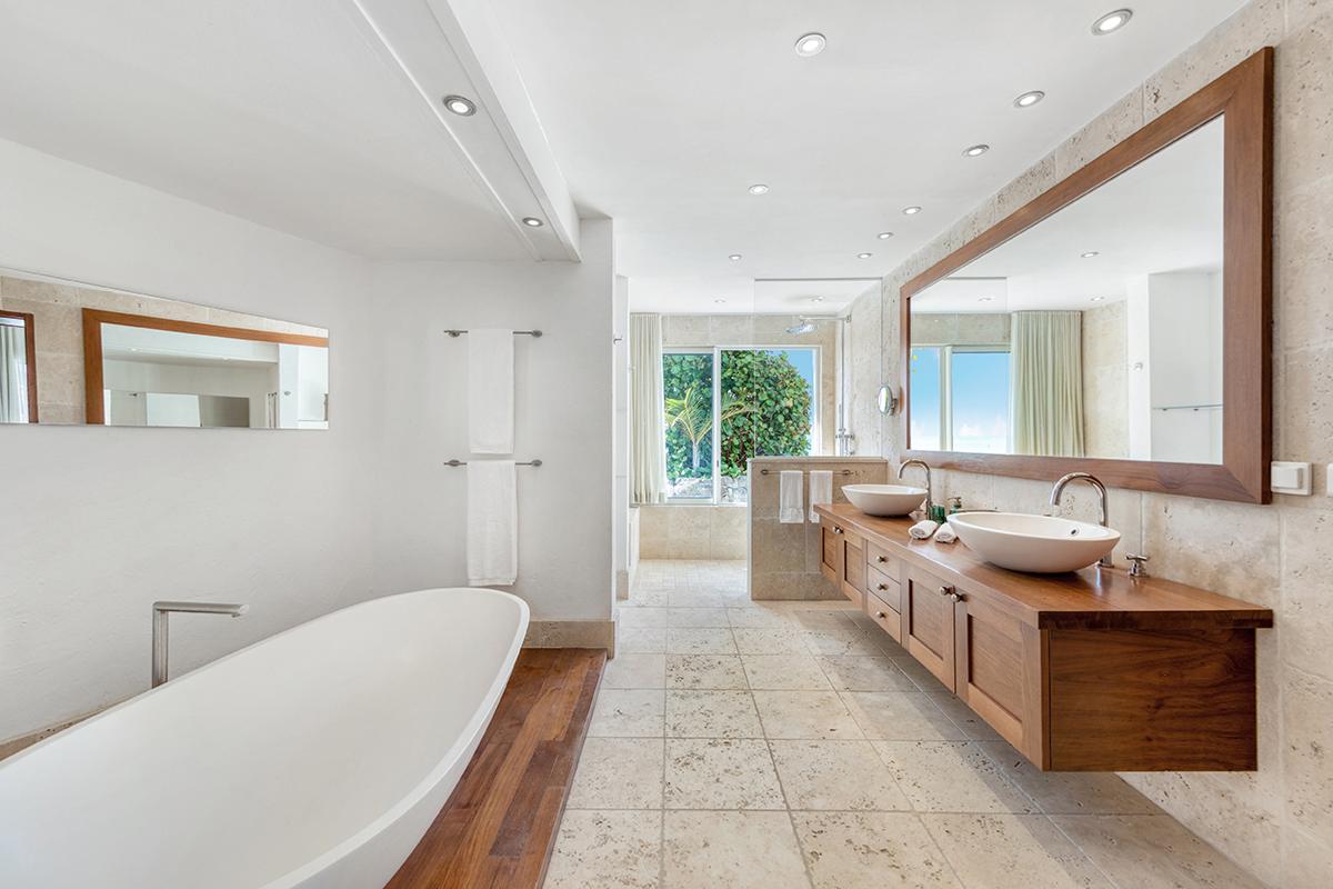 Petitie Plage 5 has 6 air conditioned master suites featuring king-size beds, large plasma TVs, walk-in closets and private bathrooms with showers (3 bedrooms also have bath tubs). There is also an air-conditioned bedroom studio with twin beds and adjoining bathroom; perfect for staff accommodation or young adults. Further amenities at Petite Plage 5 include a beach front Jacuzzi and a large outdoor roof-top terrace.