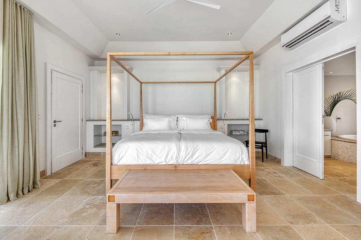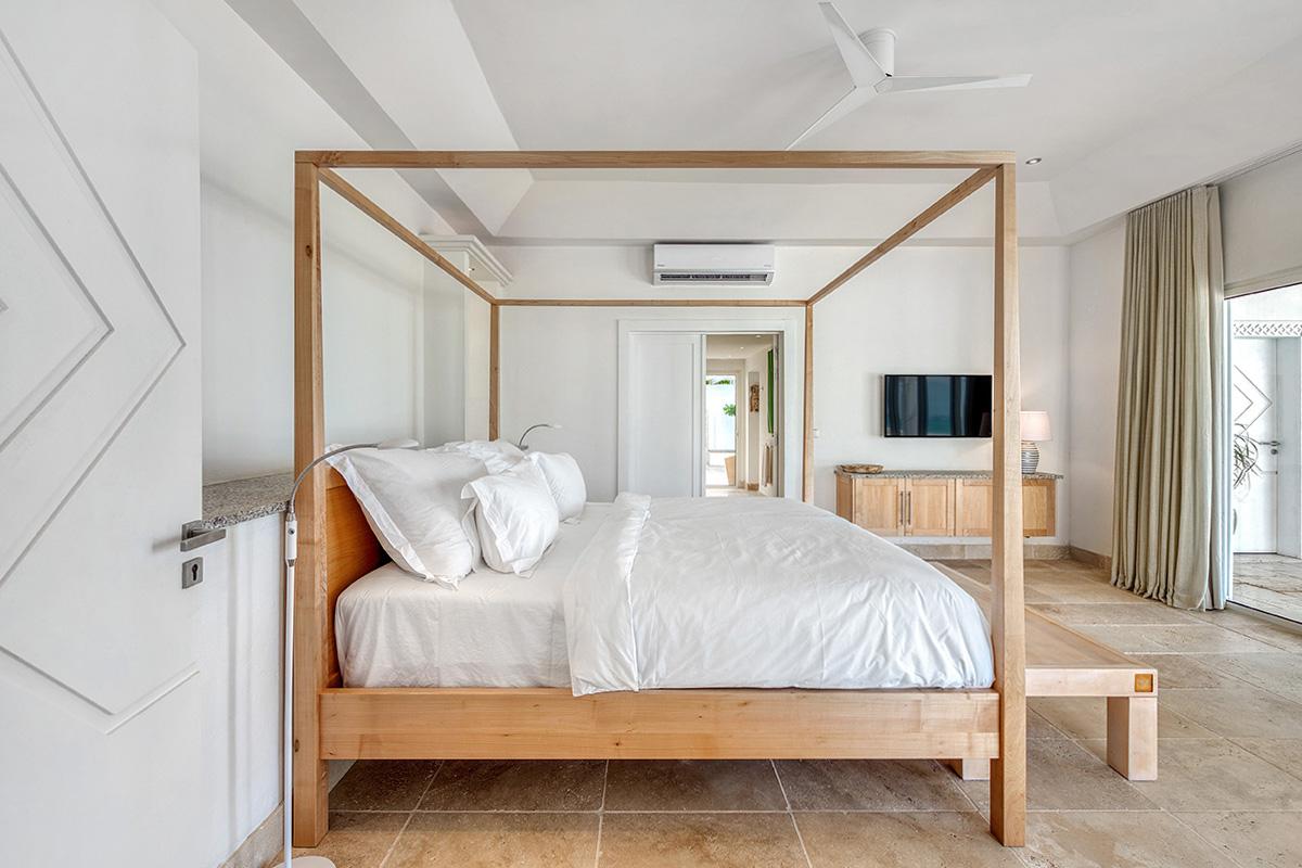 Bedroom 4: This room is equipped with a king-sized bed, an ocean view, air conditioning, a TV, a safe, and an ensuite bathroom.