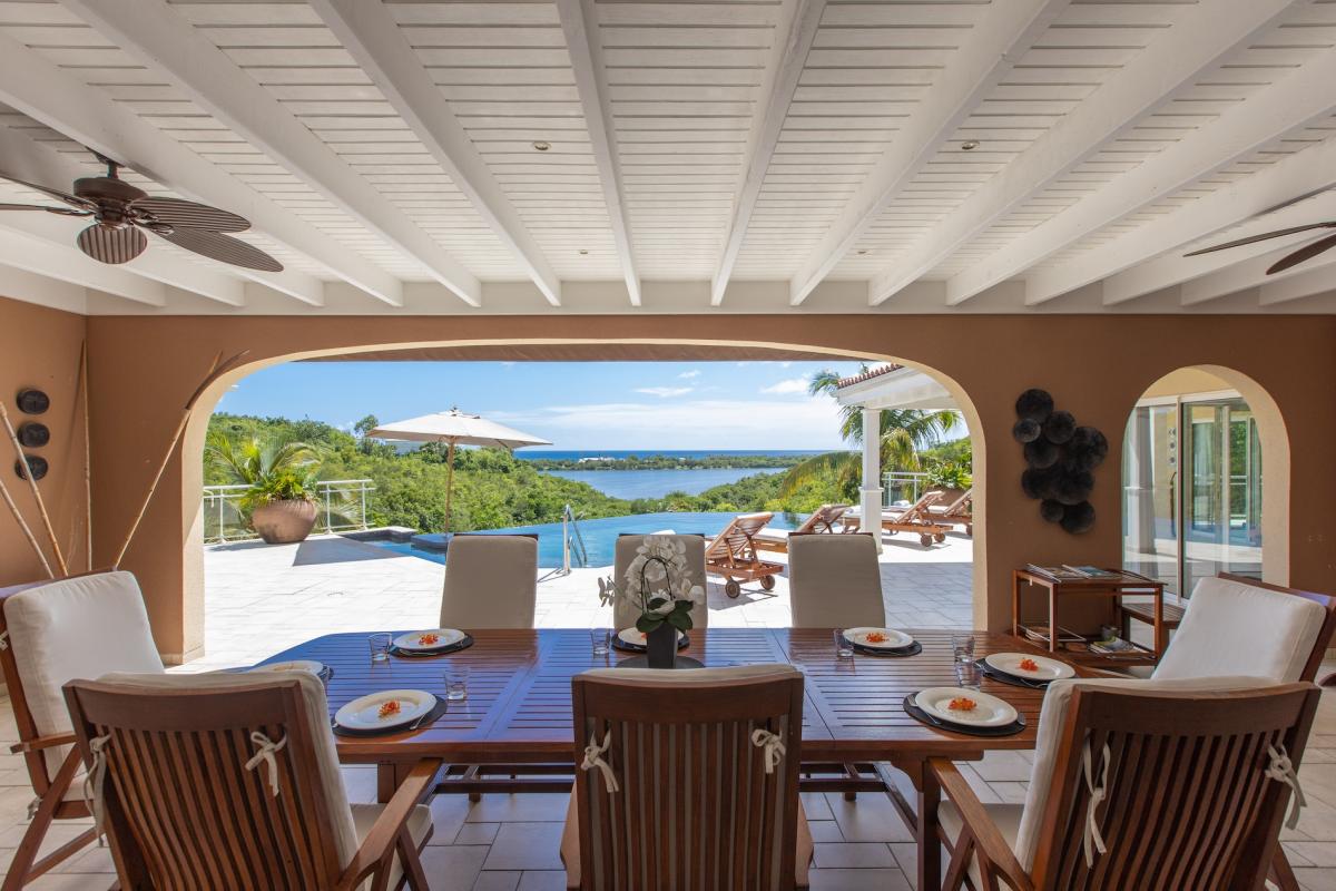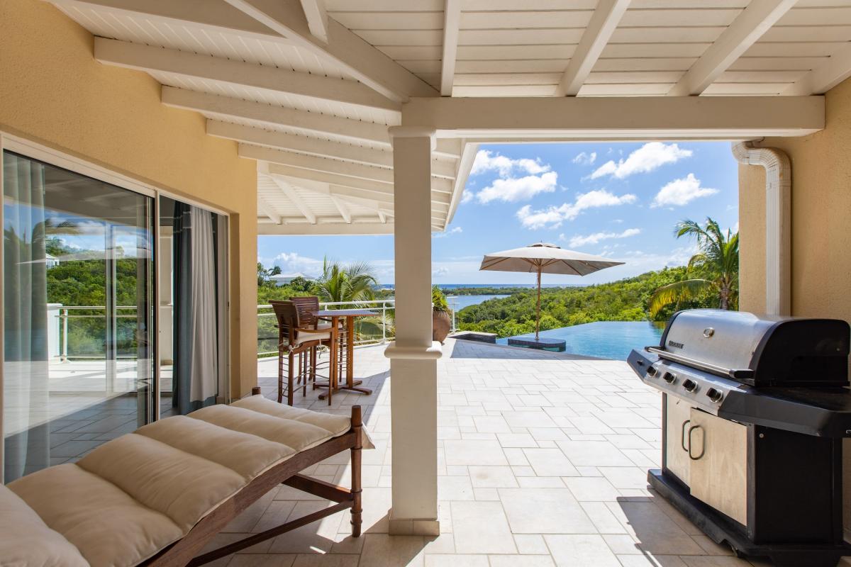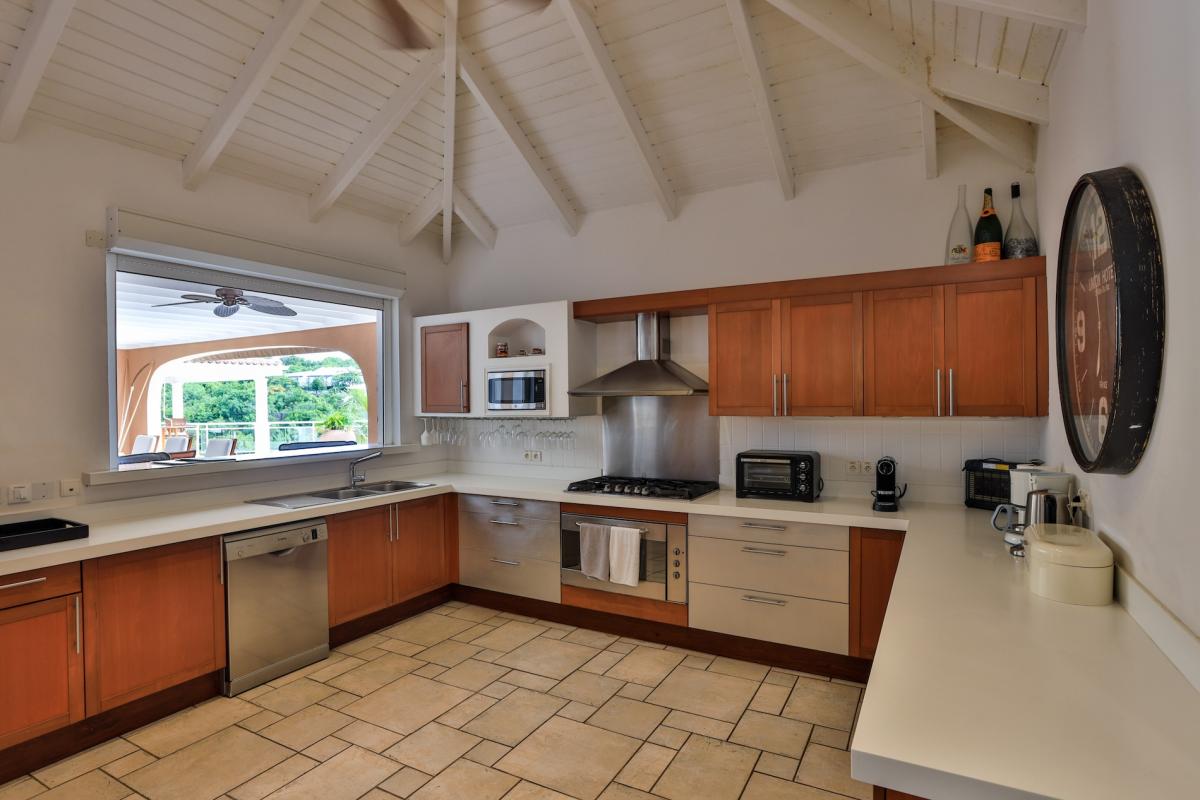 The deliciously comfortable living room and large adjoining gourmet kitchen open onto the spacious covered terrace and dining area so guests can enjoy the beautiful ocean views. All 4 bedrooms at Sea Vous Play have en-suite bathrooms and air-conditioning and open out onto the pool terrace. The bedrooms are equal in size and standard and have king-size beds with the exception of one that has 2 single beds. Further details that add to the quality this vacation rental in St. Martin include the living room with 40” flat screen TV/DVD with US satellite channels, outdoor CD player system, cathedral ceilings, wifi Internet connection, and a south facing pool.