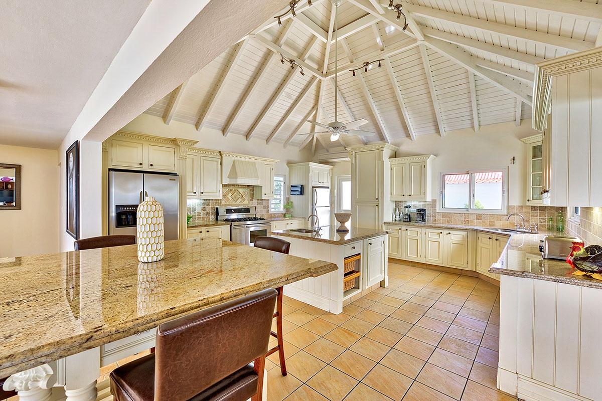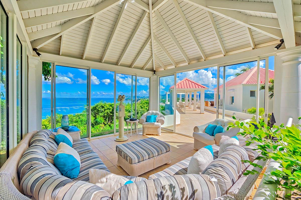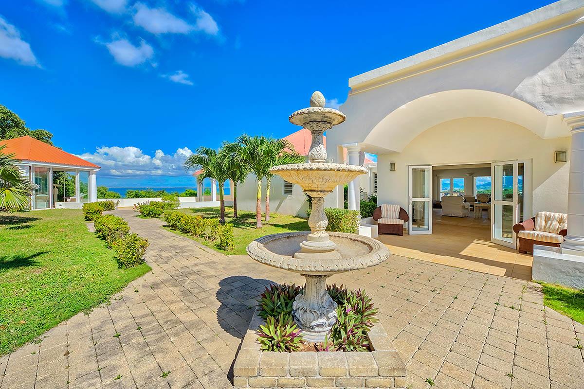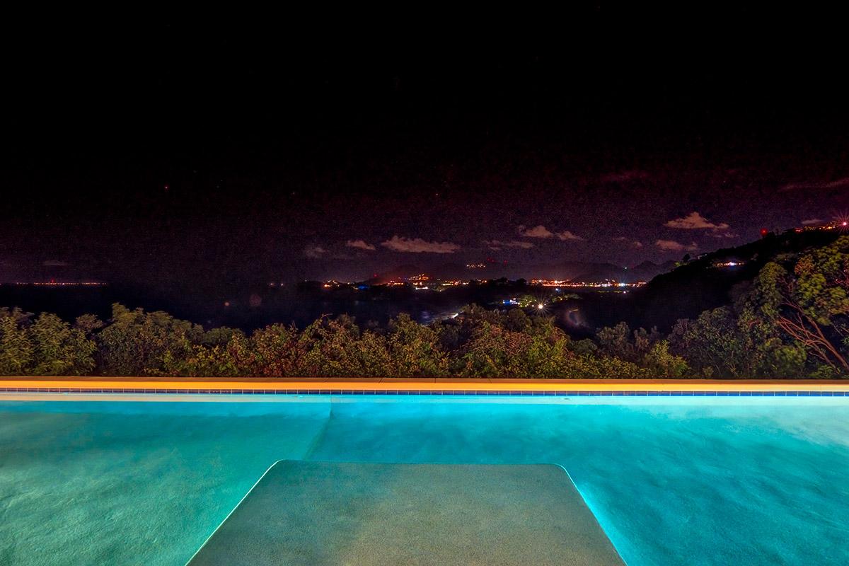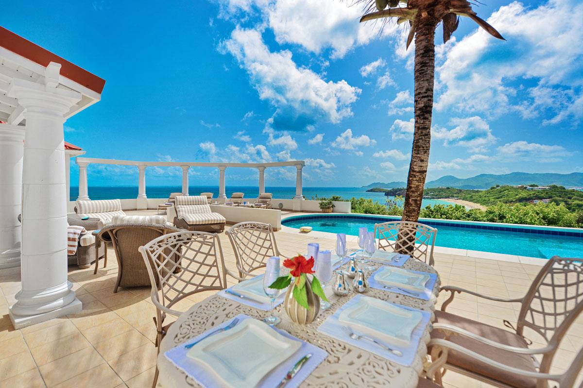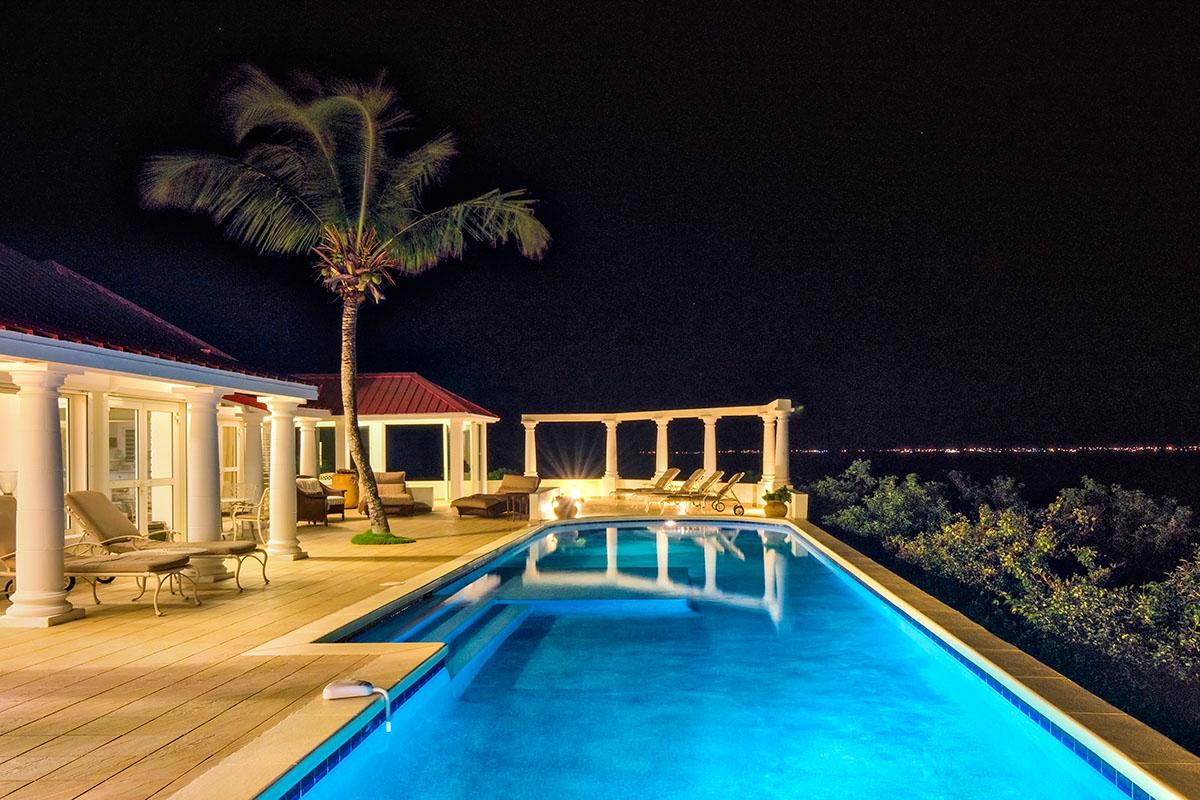 This brand new villa offers spectacular ocean view, a huge custom made kitchen with granite counter tops, a fantastic dining-living room with breathtaking views, a large plasma TV in sitting room with a collection of 200 DVDs and a charming gazebo with stunning views of Baie Rouge beach and Anguilla. This beautiful house turns to a super deluxe fully air conditioned four bedrooms hillside property. The heated pool has been enlarged twice its size, the patio area around the pool is very large and extends towards Bay Rouge. A large shade area has been built for this patio. The patio is extended to the pavilion. The fourth bedroom becomes a large bathroom and a new large bedroom has been added. New large furniture for the main living room and dining room. Plasma TV & DVD in each of the bedrooms. A large gym room has been added with complete equipment and a flat screen TV. A Jacuzzi has been installed in the patio. Free phone calls to USA & Canada (Vonage phone access) and Computer access with Internet high speed connection. Can be rented as a 2-3 & 4 bedroom villa!