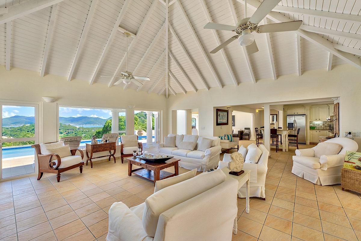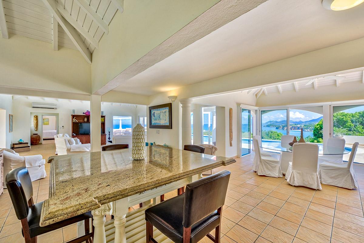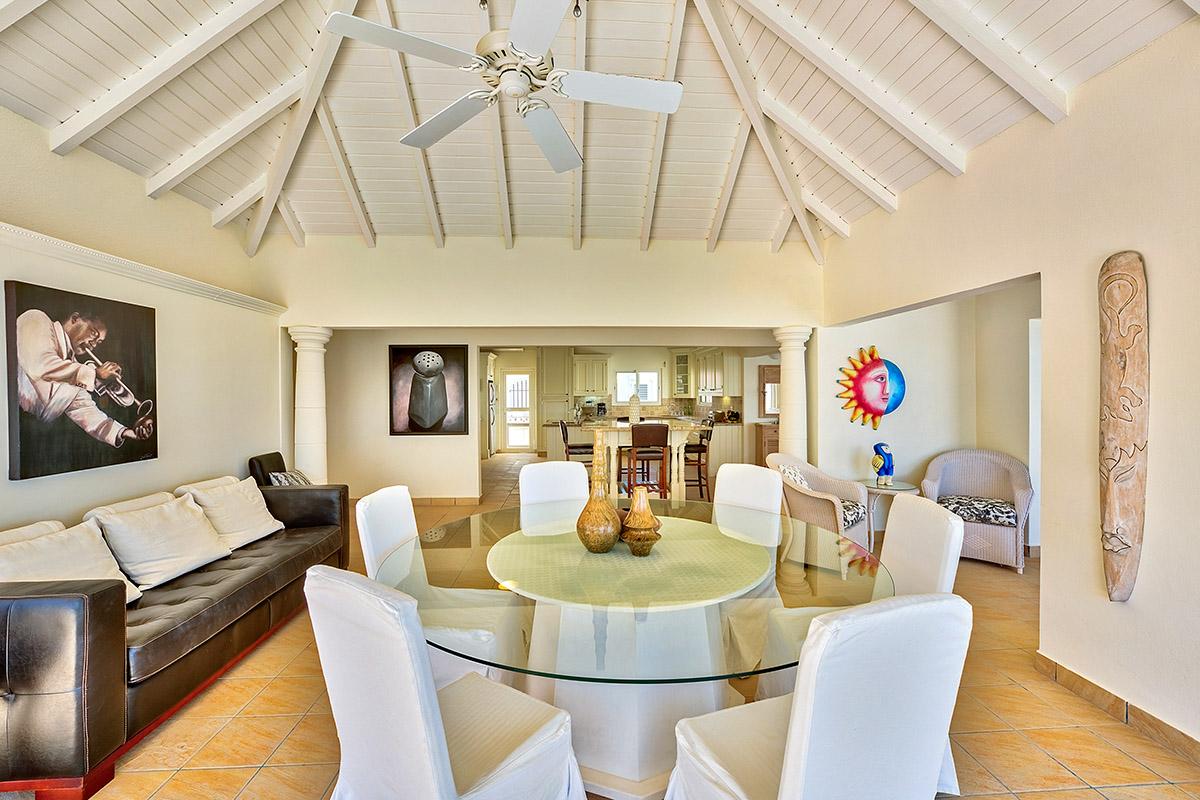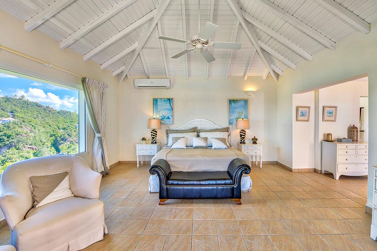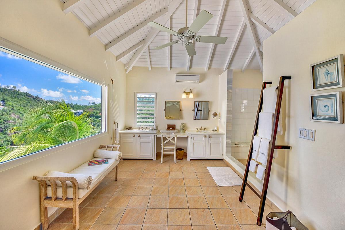 This brand new villa offers spectacular ocean view, a huge custom made kitchen with granite counter tops, a fantastic dining-living room with breathtaking views, a large plasma TV in sitting room with a collection of 200 DVDs and a charming gazebo with stunning views of Baie Rouge beach and Anguilla. This beautiful house turns to a super deluxe fully air conditioned four bedrooms hillside property. The heated pool has been enlarged twice its size, the patio area around the pool is very large and extends towards Bay Rouge. A large shade area has been built for this patio. The patio is extended to the pavilion. The fourth bedroom becomes a large bathroom and a new large bedroom has been added. New large furniture for the main living room and dining room. Plasma TV & DVD in each of the bedrooms. A large gym room has been added with complete equipment and a flat screen TV. A Jacuzzi has been installed in the patio. Free phone calls to USA & Canada (Vonage phone access) and Computer access with Internet high speed connection. Can be rented as a 2-3 & 4 bedroom villa!