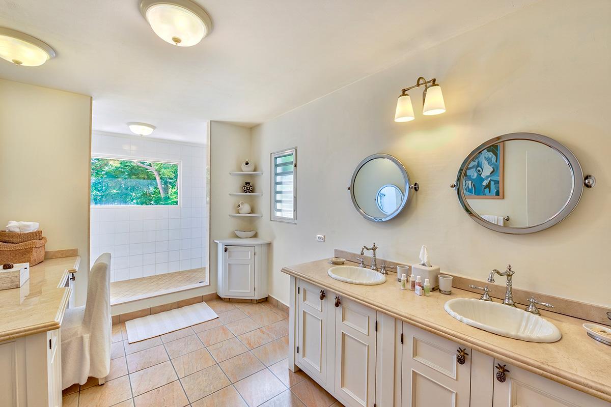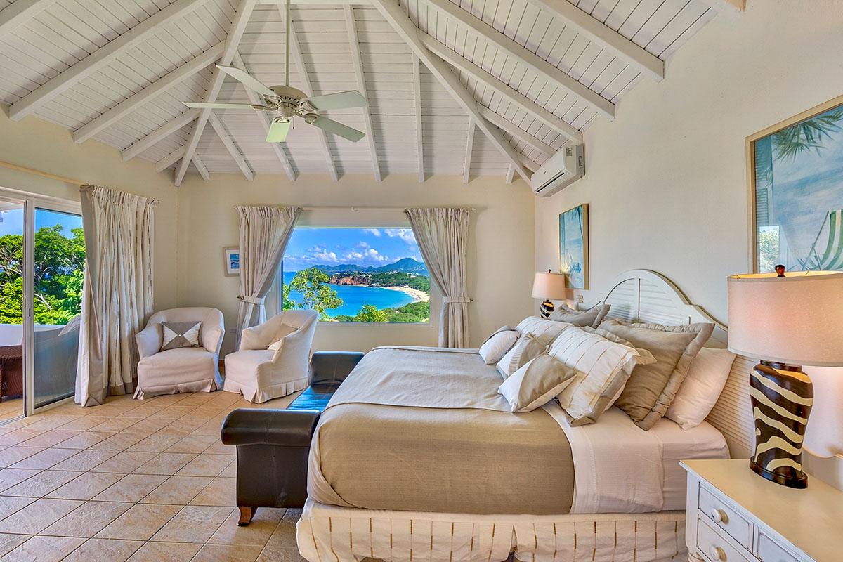 - Bedroom 2: King bed, private bathroom with shower, AC, ceiling fan, TV