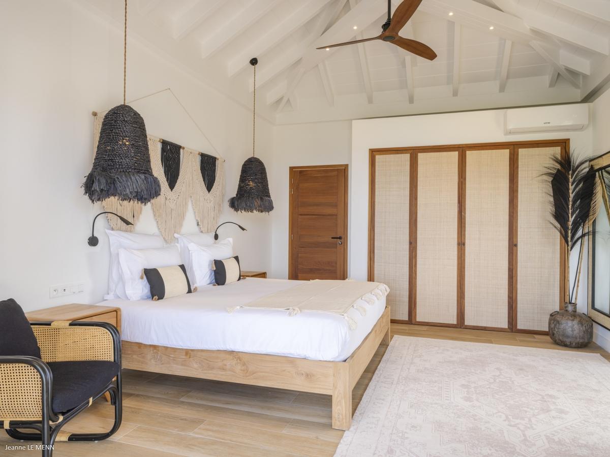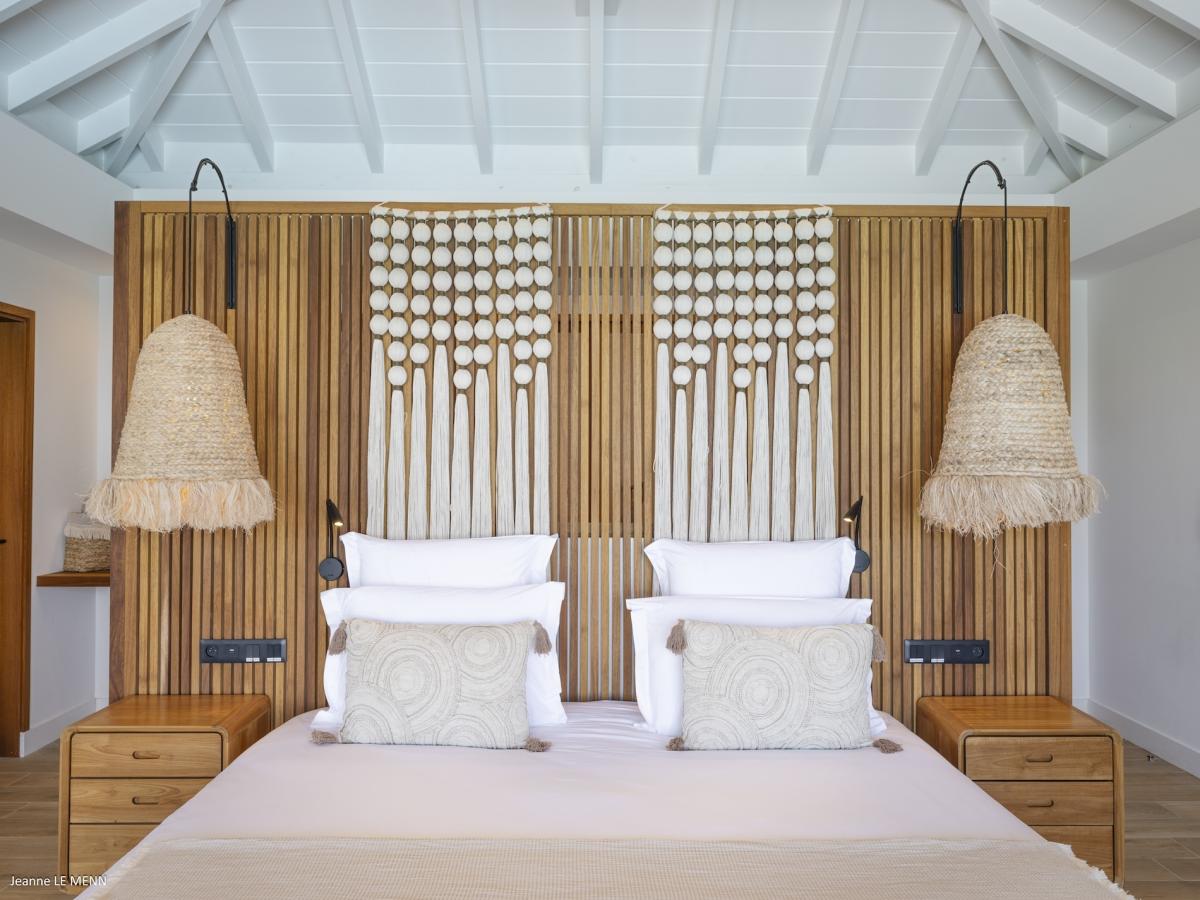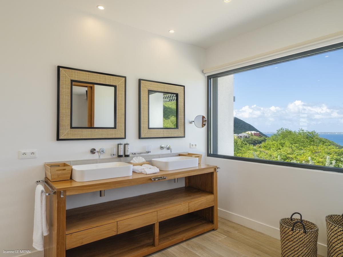 Each of the five bedrooms provides unobstructed views of the horizon and complete privacy. Three of the bedrooms are on the same level as the main living and the remaining two are accessible via a small staircase beside the pool, open onto private terraces. All bedrooms have bright ensuite bathrooms featuring a walk-in closet.