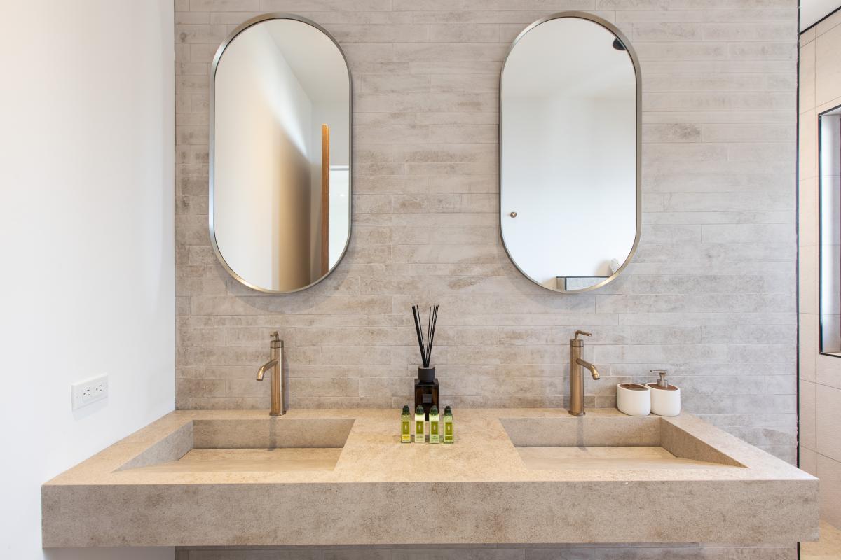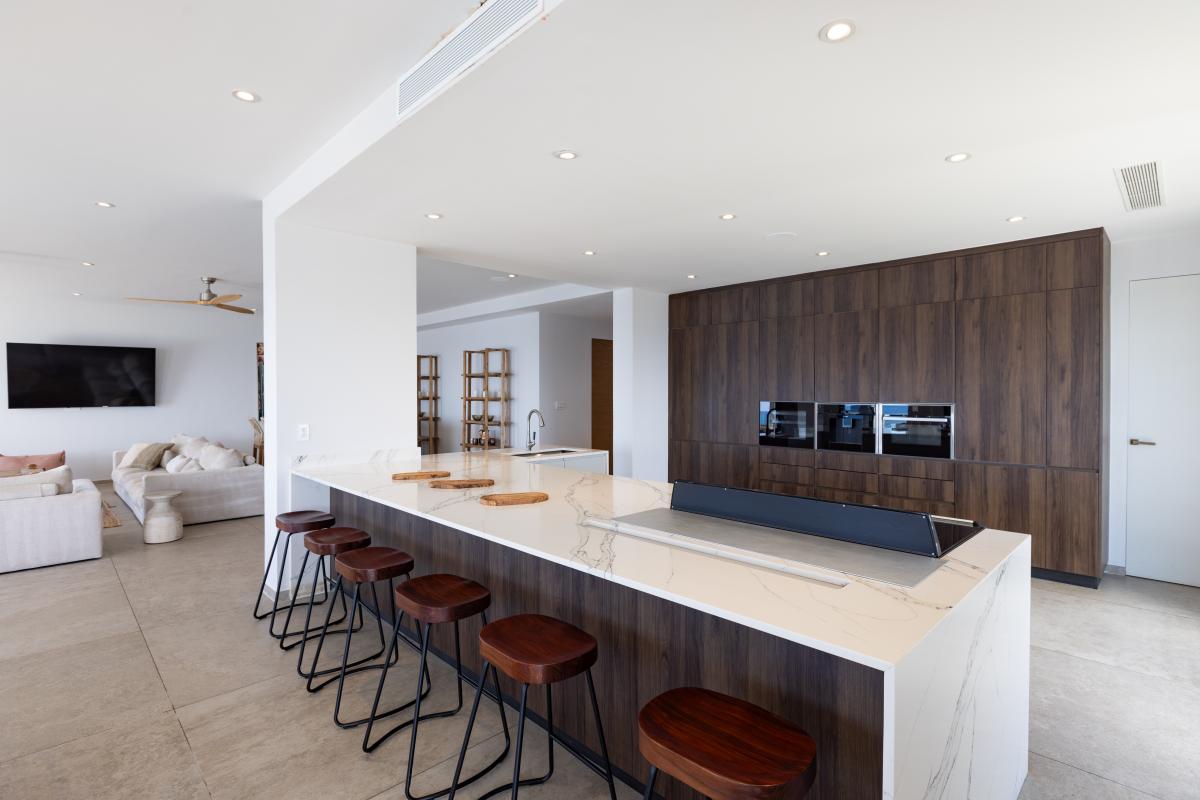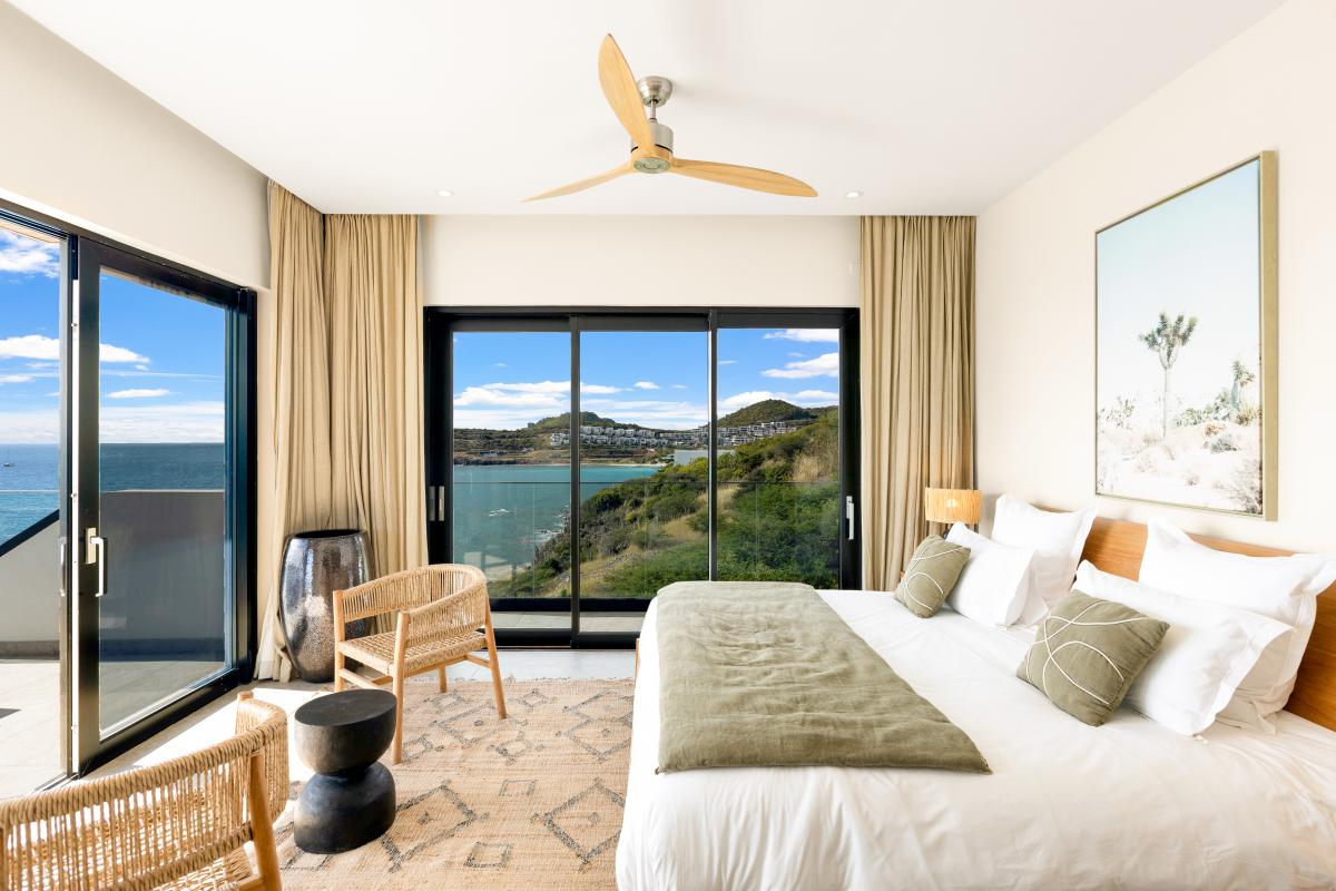Villa Aqua Vista is a 6-bedroom, multi-level St. Martin villa rental near Indigo Bay. This villa offers sleek lines and sophicated architecture with minimalist design and modernity. With expansive windows and an open-concept, panoramic views of the Caribbean Sea highlight the beauty of this location. The six bedrooms are designed to deliver comfort and tranquility using neutral hues and top-tier furnishings, complementing the villa's contemporary aesthetic.