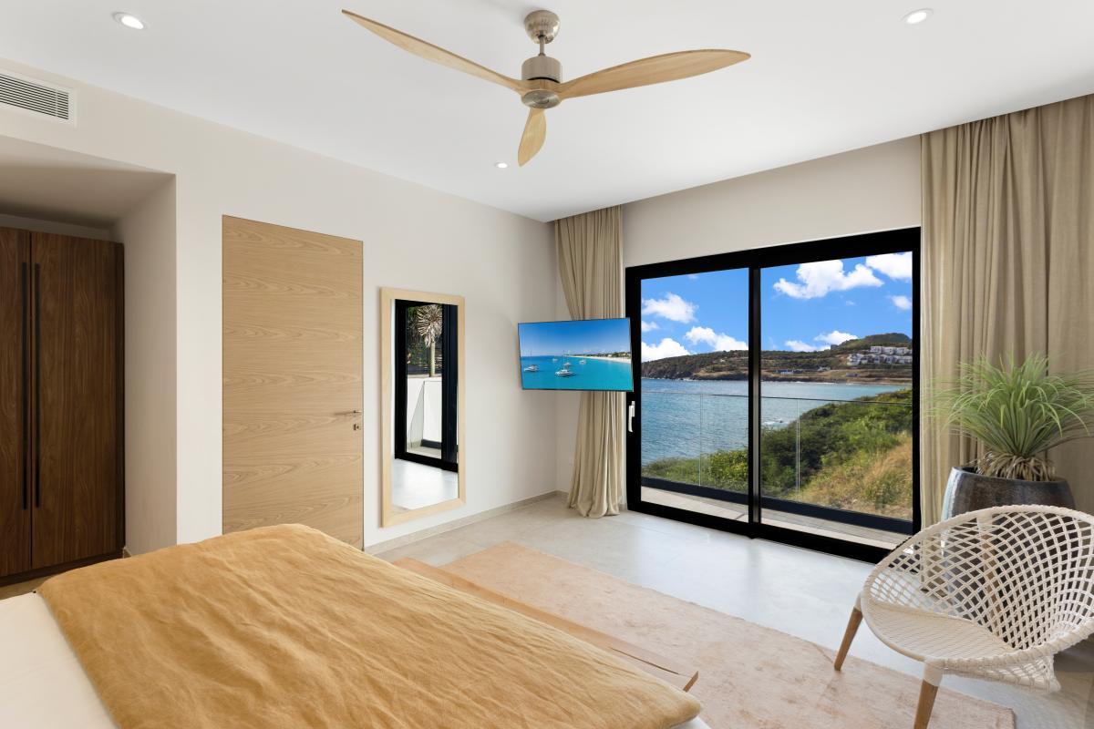 Bedroom 5: King-sized bed, an ocean view, air conditioning, a TV, a safe, and an ensuite bathroom.