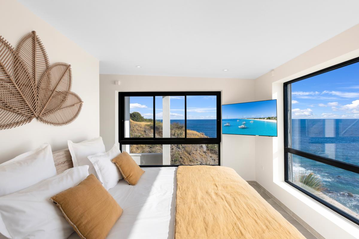 Bedroom 4: King-sized bed, an ocean view, air conditioning, a TV, a safe, and an ensuite bathroom.