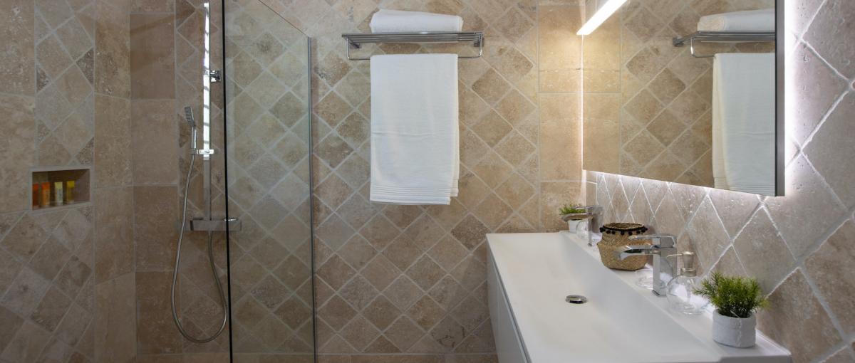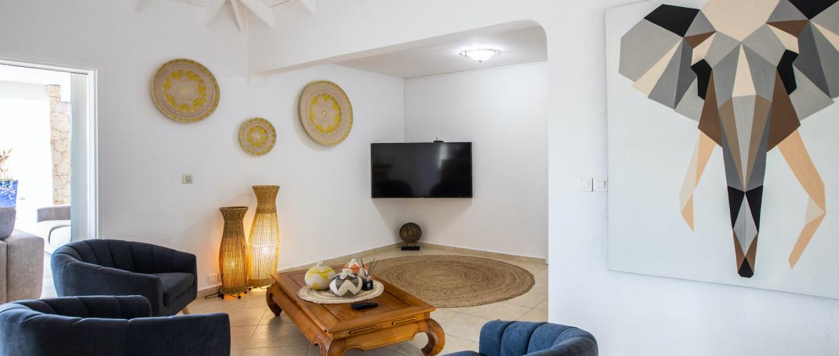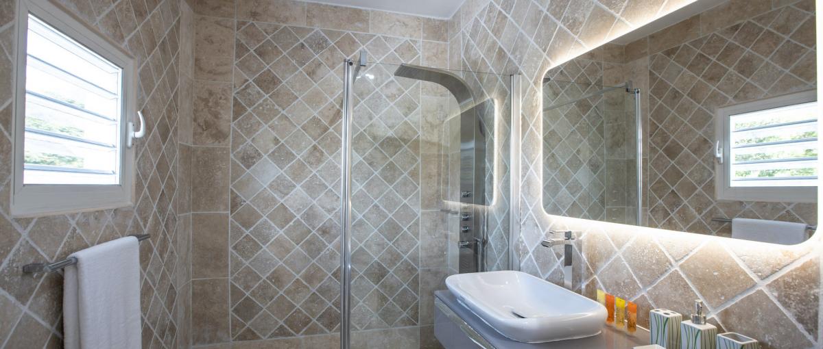 Villa Caribbean Stone includes 5 bedrooms, with television, and their en suite bathrooms as well as a living room, an equipped kitchen and a gym. Villa Caribbean Stone offers you a swimming pool with 2 very comfortable terraces and a jacuzzi for your relaxation! Villa Caribbean Stone is the perfect very private villa for your stay in St Martin with family or among friends. Villa Caribbean Stone can be rented as a 4 or a 5 bedroom villa!