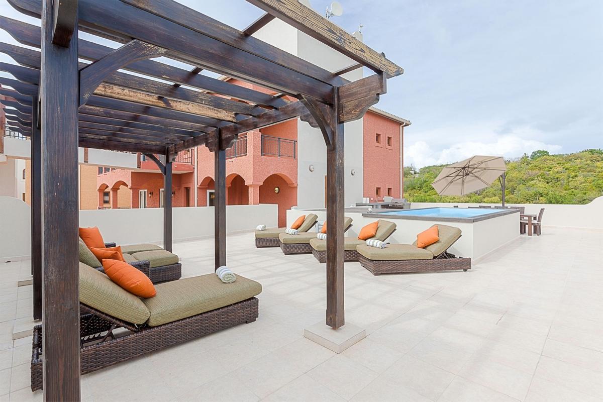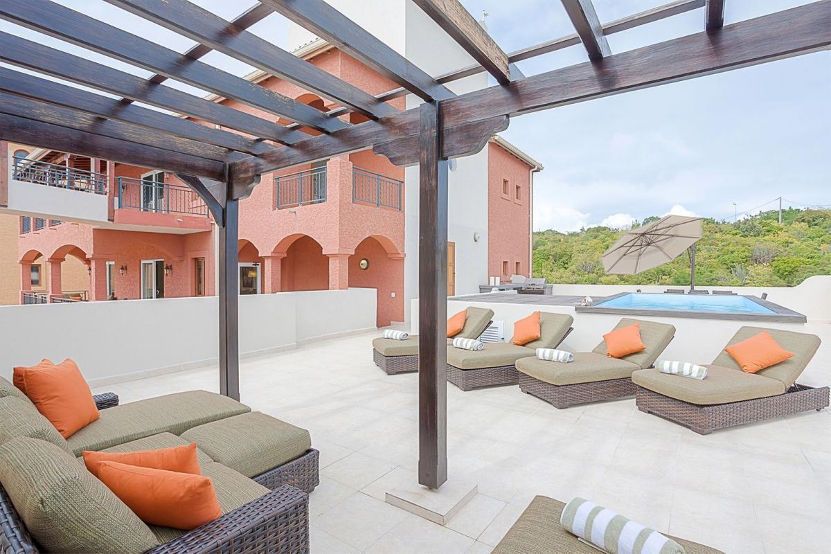 Villa Corfu is a spacious penthouse rental in St. Martin located in Porto Cupecoy. This rental has 3 bedrooms each with their own full ensuite bath and an additional half bath in the main living area.
