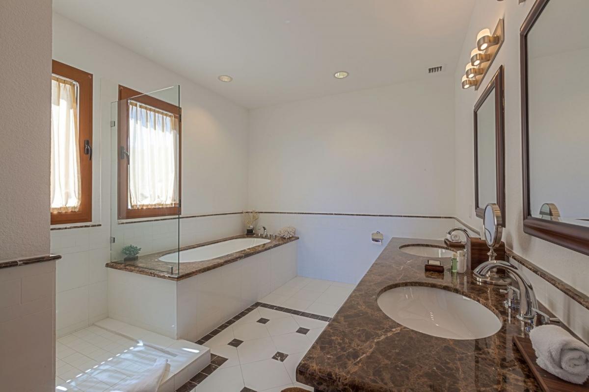 Bathroom 1: en-suite to master, double vanity, soaker tub, shower