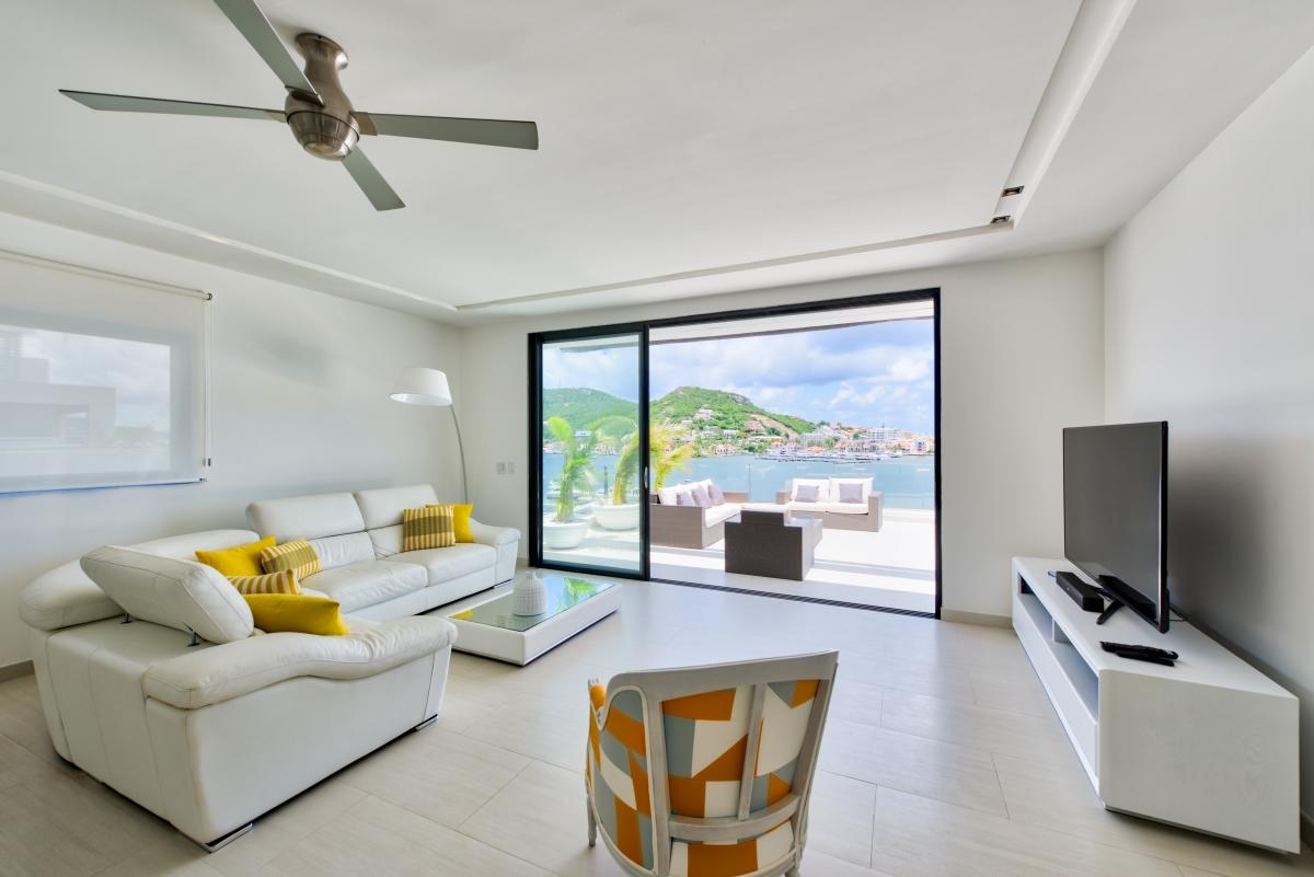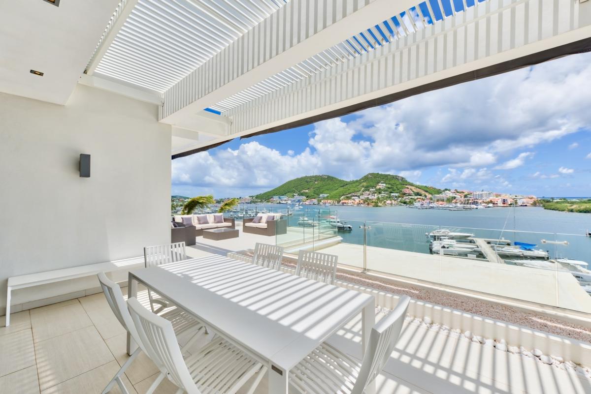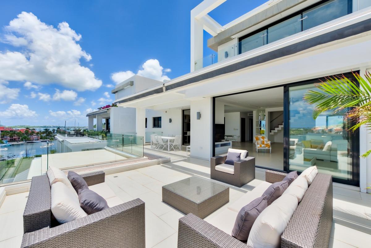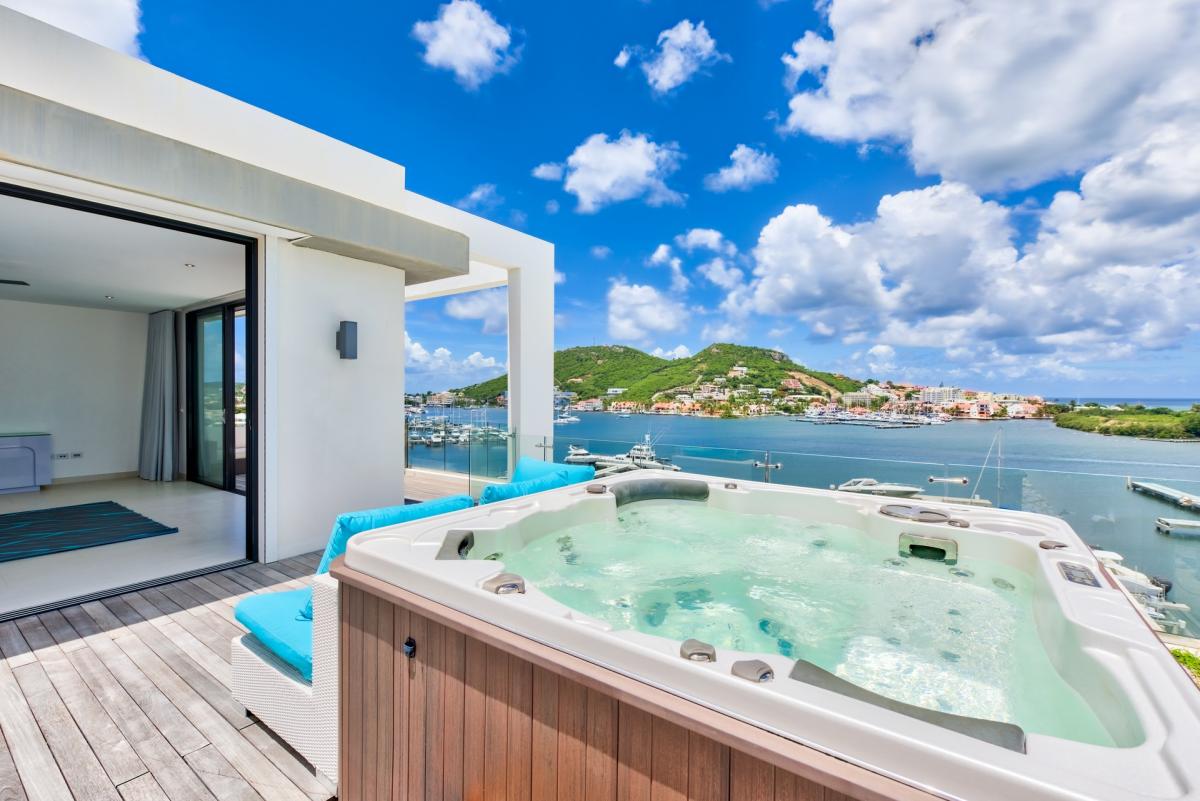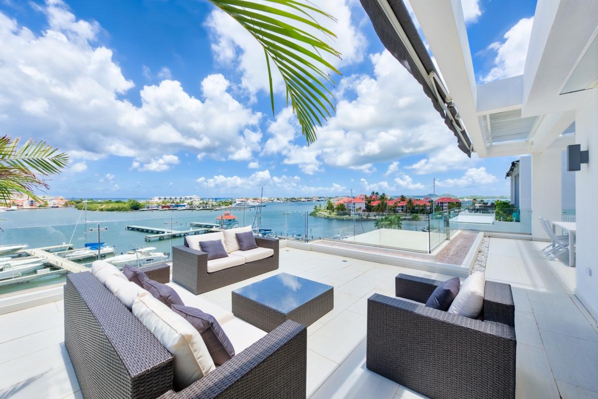 Villa Just Blue is a modern penthouse with a spectacular view of Simpson Bay Lagoon and the Caribbean Sea. Add some sparkle to your view day or night with the moored yachts in the marinas.
