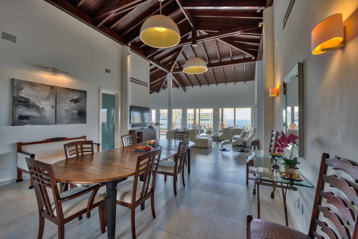 Villa La Perla Sky is an upscale penthouse located in Porto Cupecoy in St. Martin. This St. Martin rental is located on the 10th floor and has three bedrooms, two bedrooms with ensuite bathrooms, and one bedroom with a separate bathroom. Villa La Perla Sky has a beautiful view of the Simpson Bay Lagoon and the Caribbean sea. This penthouse is equipped with a rooftop with a plunge pool, a TV room, and a spacious living area with an American-style kitchen.