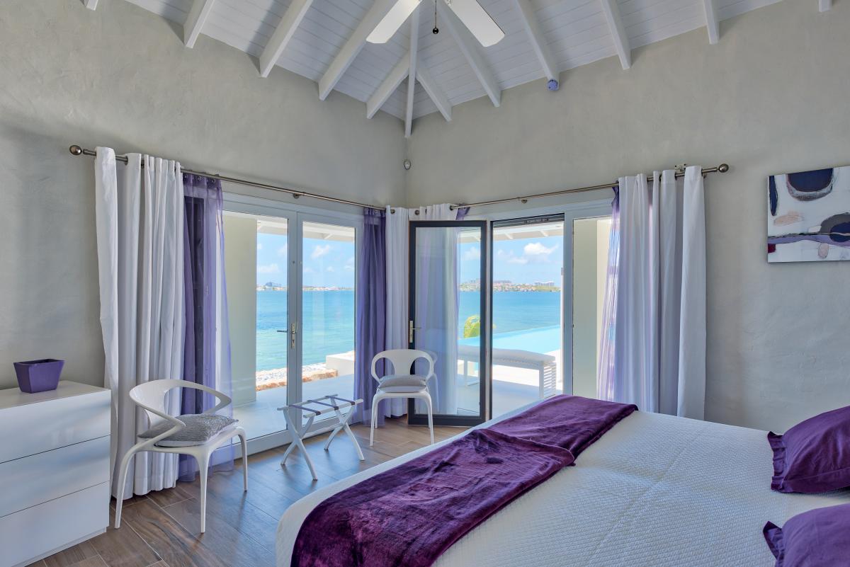 Villa Mirabelle is a gorgeous St. Martin rental located on Simpson Bay lagoon in Terres Basses. This modern St. Martin villa has five bedrooms, all with their own ensuite bathroom. The well equipped kitchen opens onto the terrace and has a view of the lagoon. The covered terrace is equipped with fans, and two aqua bikes are available.