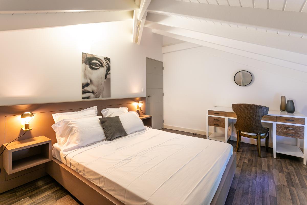 Bedroom 4: This room is equipped with a full-sized bed, a garden view, air conditioning, a safe, and a bathroom.