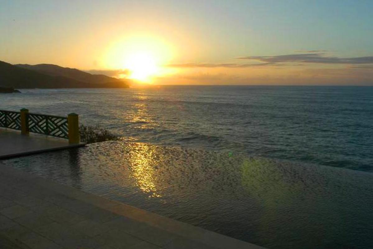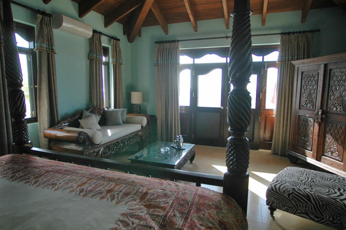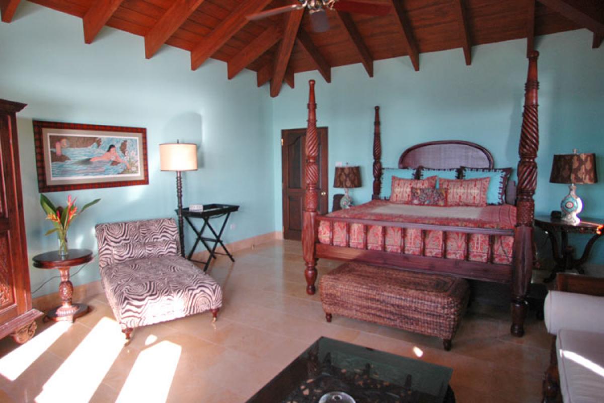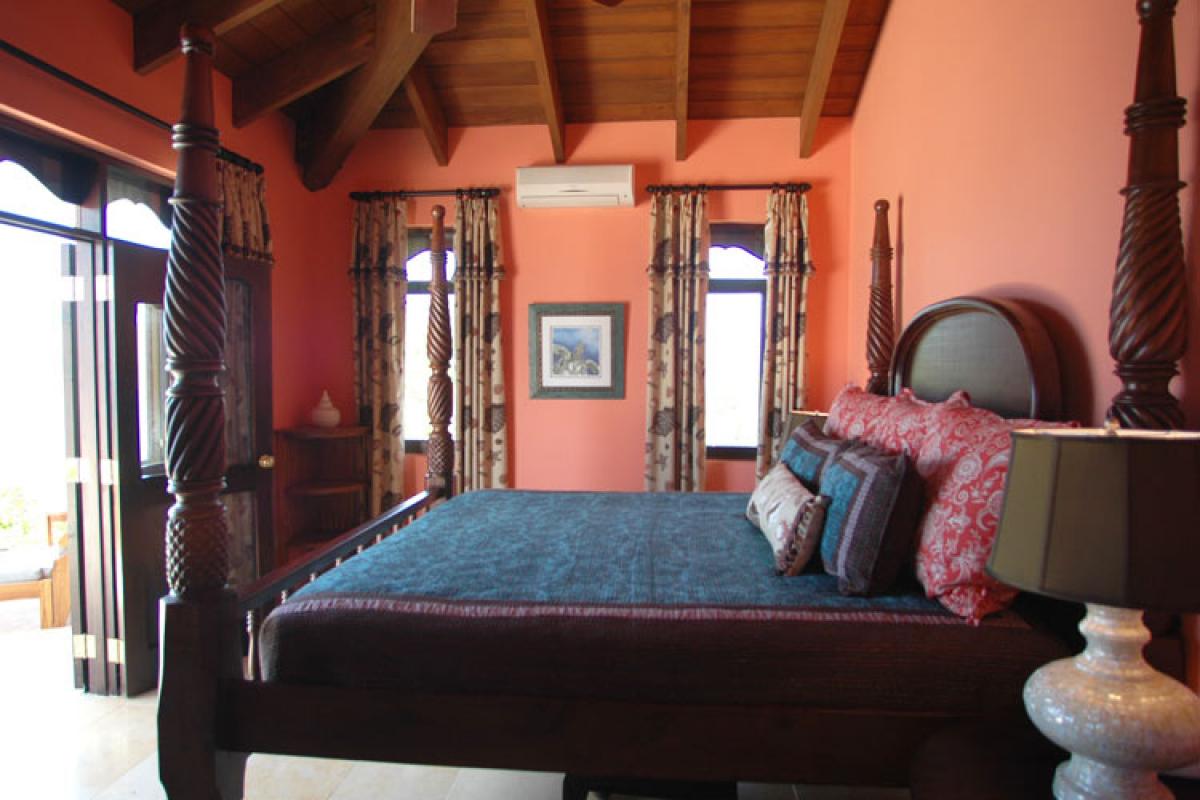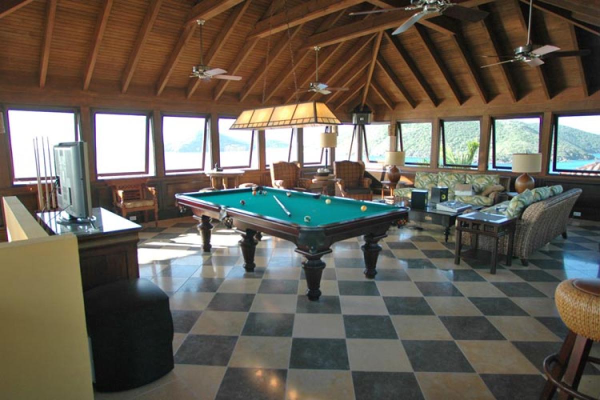 Golden Pavilion Villa is a unique property, unparalleled in Tortola. The villa presents zen tranquility and privacy, juxtaposed with modernity and meticulous details. Walking gardens, paths leading to sunken stone retreats, and sitting areas are nestled under mature plantings at cliff’s edge. Tropical birds ride warm breezes up the cliff to sip from the infinity pool. Turtles, rays, and the occasional whale can be seen from the deck. Breathtaking views complement the highest building standards with imported granites, marbles, fittings, appliances, and furnishings; Golden Pavilion Villa comforts the eye and soothes the soul. Privately situated on four gated acres, this brand new 5000 square foot, Balinese inspired villa with four bedrooms, a one bedroom guest cottage, and four and a half baths, features stunning 180 degree ocean views, a heated infinity pool, a hot tub, an outdoor gas fire pit, a second floor gallery with wet bar and pool table, a media room with a large flat screen TV and surround sound, an office with fax/pc/wireless internet, a fully equipped gym, air conditioning in all primary rooms, and a private chef. Traditional Indonesian sculptures, art, and furnishings fill the public spaces and the villa is decorated with a refined, distinctly British-Colonial flair. All bedrooms are elegantly appointed with imported four poster beds, exotic fabrics, and heavy black out draperies. Boating excursions on our 29’ fishing/ski boat, and spa services are also available. The centerpiece and one of the defining features of Golden Pavilion Villa is the heated infinity pool. Majestically centered on the ocean facing deck, with views east, north, and west, the 20 x 40’ pool will be your daily focus. Overlooking the pool and the views beyond, is the 16’ carved Balinese dining table with seating for 10. Additional cocktail seating for 8 is available poolside for breakfast, afternoon tea, or after dinner drinks. Located on the east end of Tortola, Golden Pavilion Villa is a 7 minute walk from secluded Little Bay Beach and a 15 minute drive to Road Town. Direct ocean access is available from the property for the adventuresome.