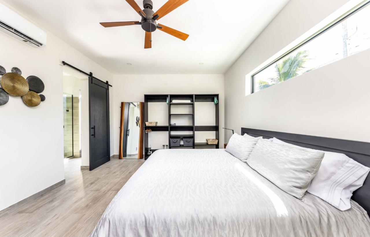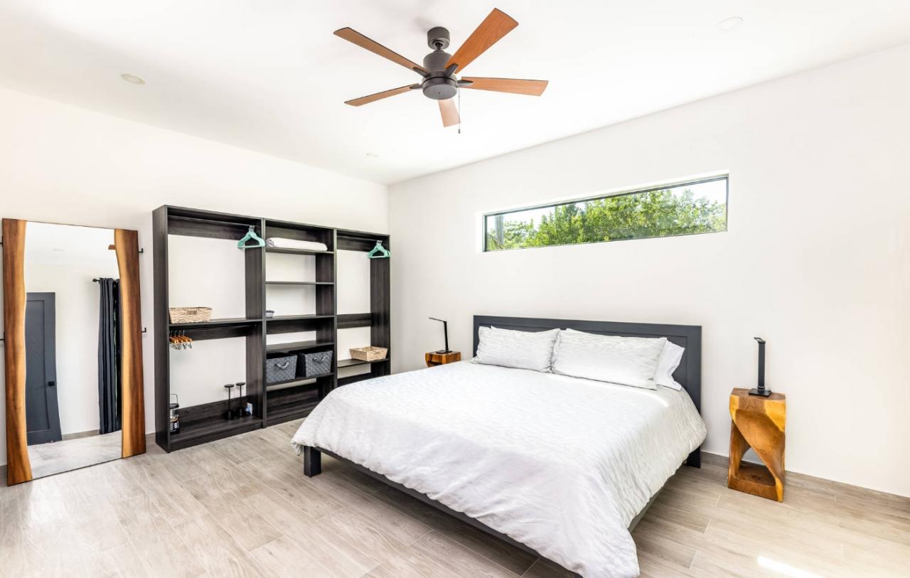 Bedroom 1: King bed, ensuite bathroom, ceiling fan