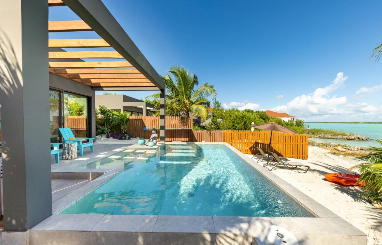 Beach Escapes Villa One offers the ultimate private getaway on Chalk Sound, combining contemporary style with serene seclusion. This newly constructed one-bedroom villa features elegant décor, modern amenities, and standout touches like an outdoor tub made from handmade Balinese crushed stone. Guests can wake up to the gentle sound of waves on their private beach, enjoy stunning ocean views from the outdoor shower, or relax in the private pool surrounded by lush landscaping. The villa perfectly balances comfort, luxury, and a connection to the natural beauty of the island.