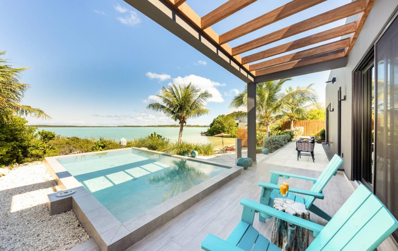 Beach Escapes Villa Two offers the ultimate private getaway on Chalk Sound, combining contemporary style with serene seclusion. This newly constructed one-bedroom villa features elegant décor, modern amenities, and standout touches like an outdoor tub made from handmade Balinese crushed stone. Guests can wake up to the gentle sound of waves on their private beach, enjoy stunning ocean views from the outdoor shower, or relax in the private pool surrounded by lush landscaping. The villa perfectly balances comfort, luxury, and a connection to the natural beauty of the island.