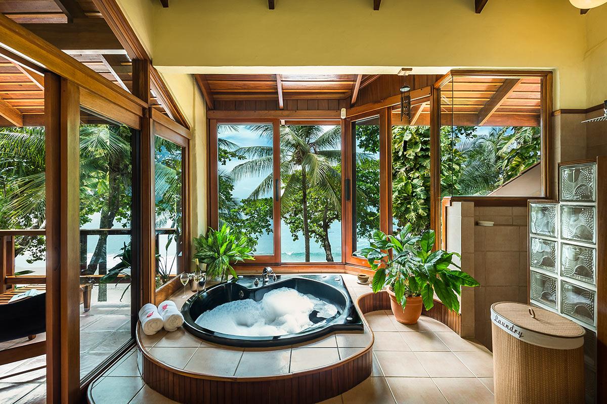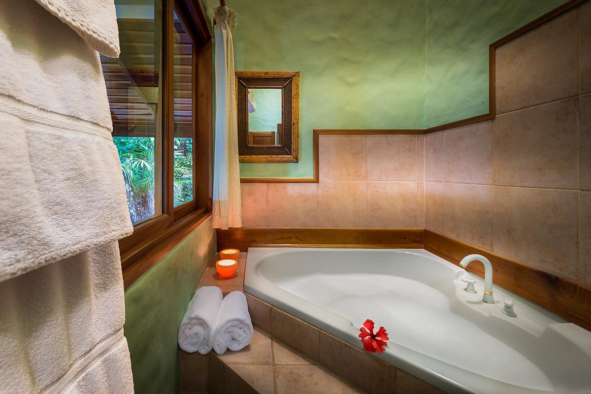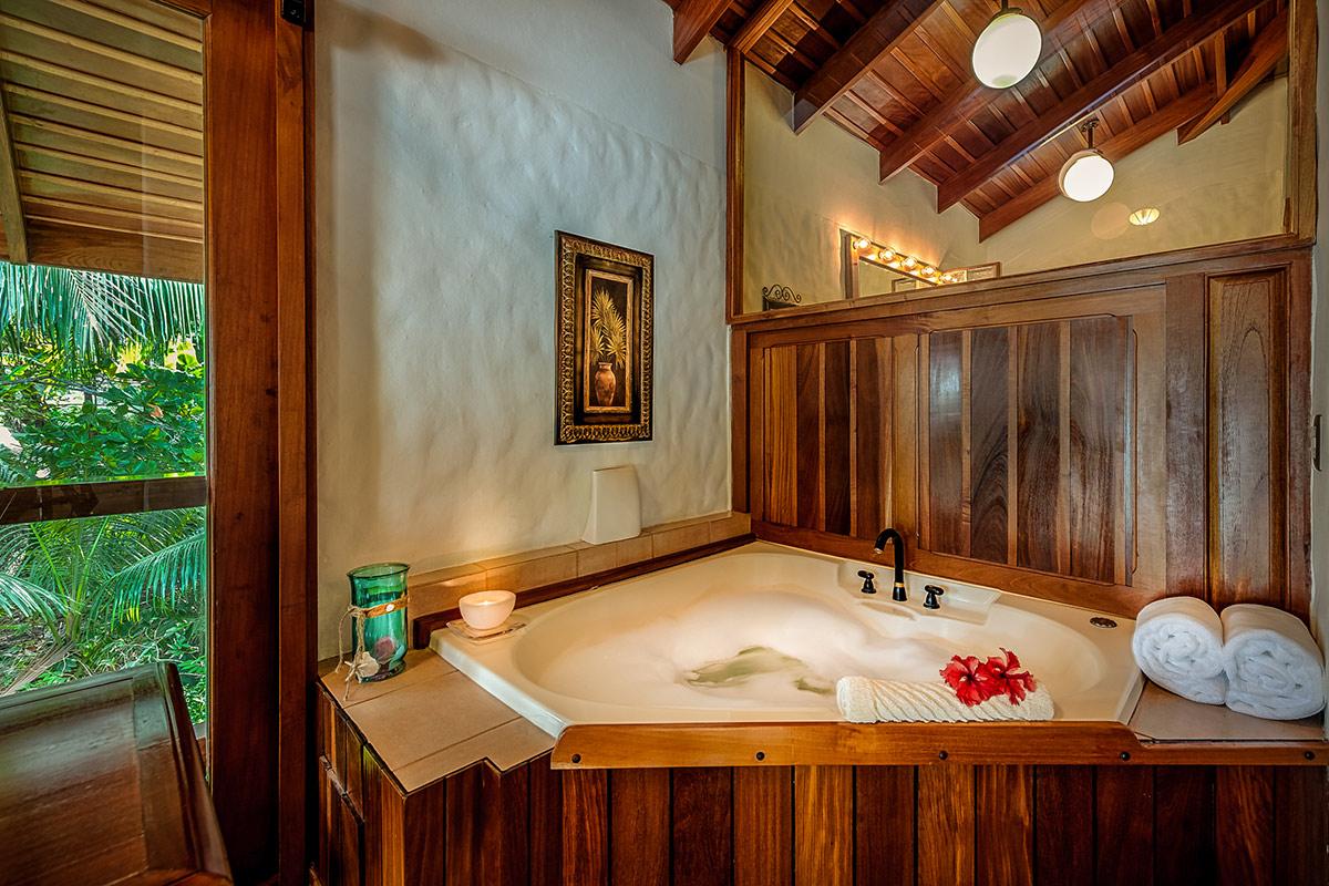 - Bedroom 4: King bed, en suite bathroom with jacuzzi tub and shower, AC, ceiling fan, safe, phone, satellite TV, balcony, ocean view, located on the second floor