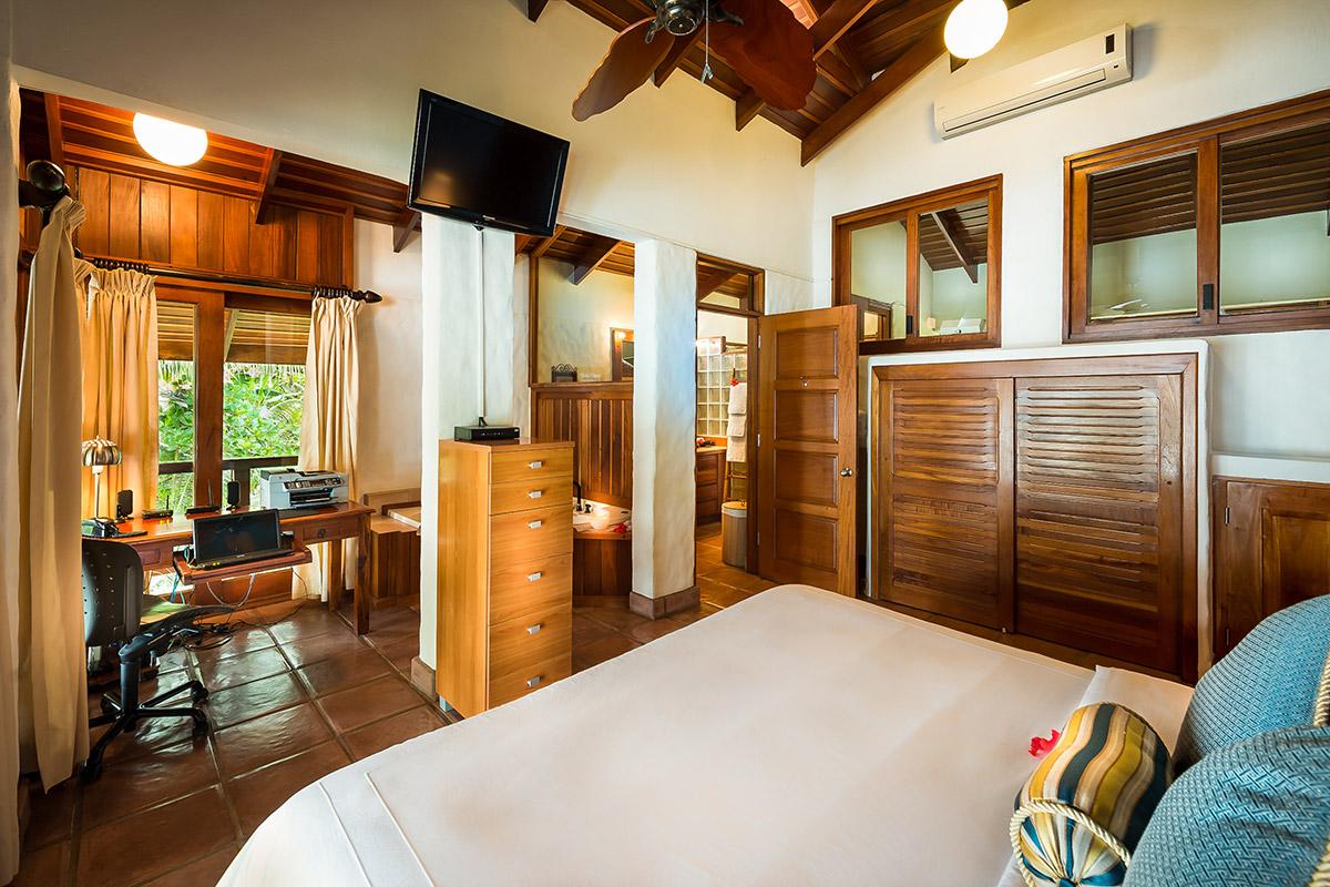 - Bedroom 2: King bed, shared bathroom, AC, ceiling fan, safe, phone, satellite TV, ocean view, access to pool, located on the main floor