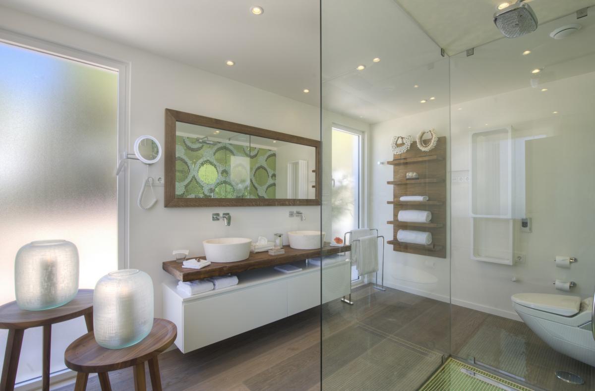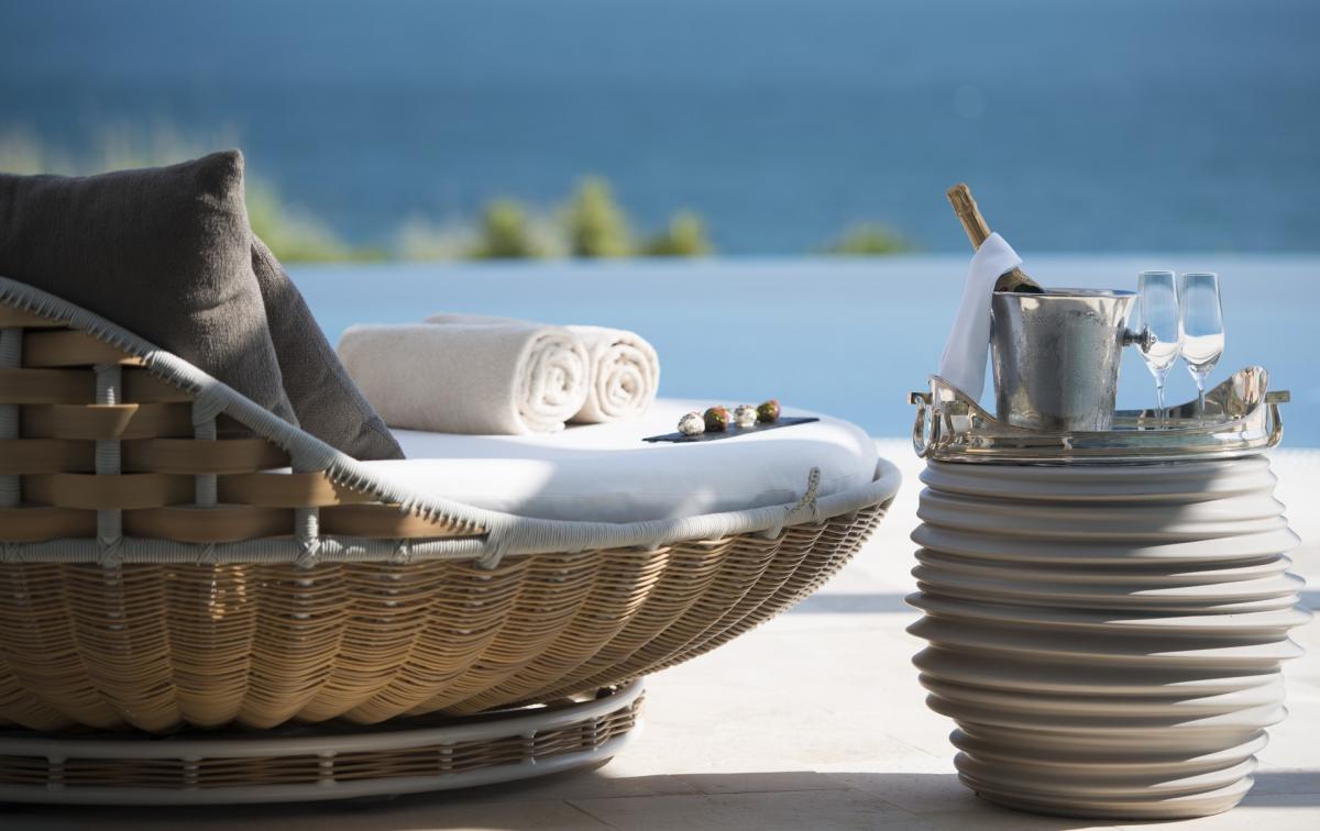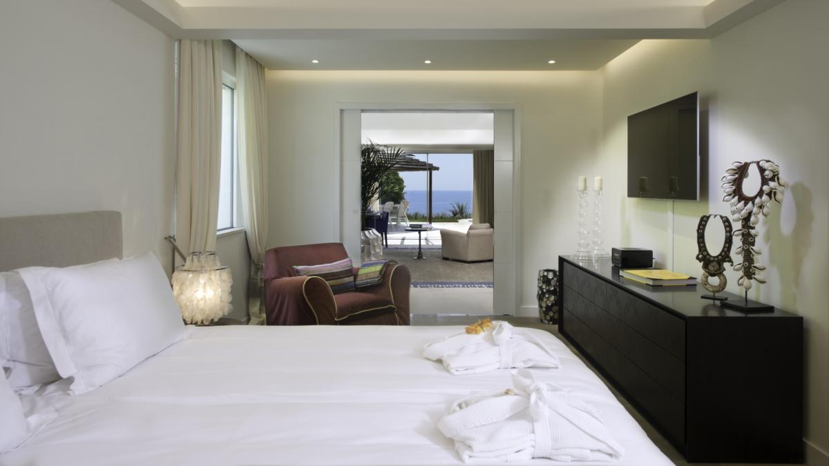Cool, clean and calm is the tone set in all 5 bedrooms. Surrounded by gardens, pool and sea views, these suites pass from excellent to incomparable. Each has its own soothing identity and fully decked out, large bathrooms.