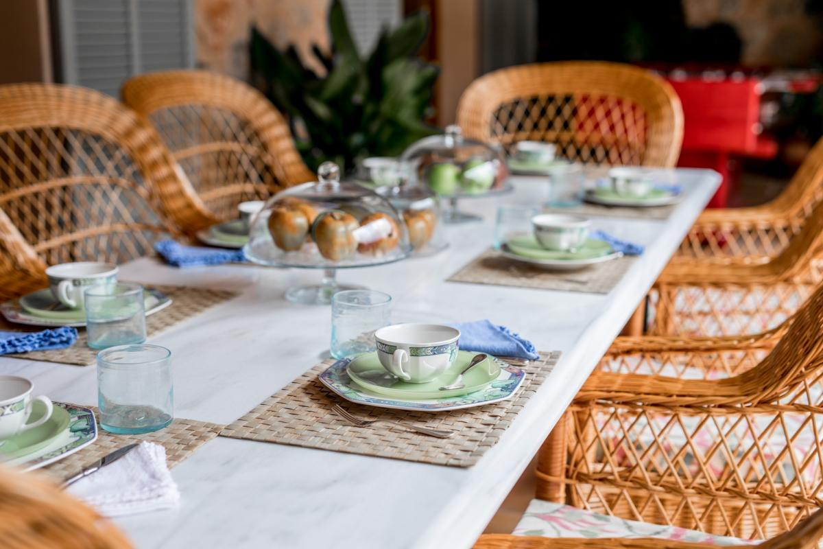 The furthest wing of from the home’s front door is also the closest to the sea. The foyer opens onto a large living room with two separate sitting areas and a fireplace, which enjoy Mediterranean Seas and are accompanied by an adjacent office. Opposite the living room is a beautiful formal dining room with seating for up to twelve guests as well as continued sea views.