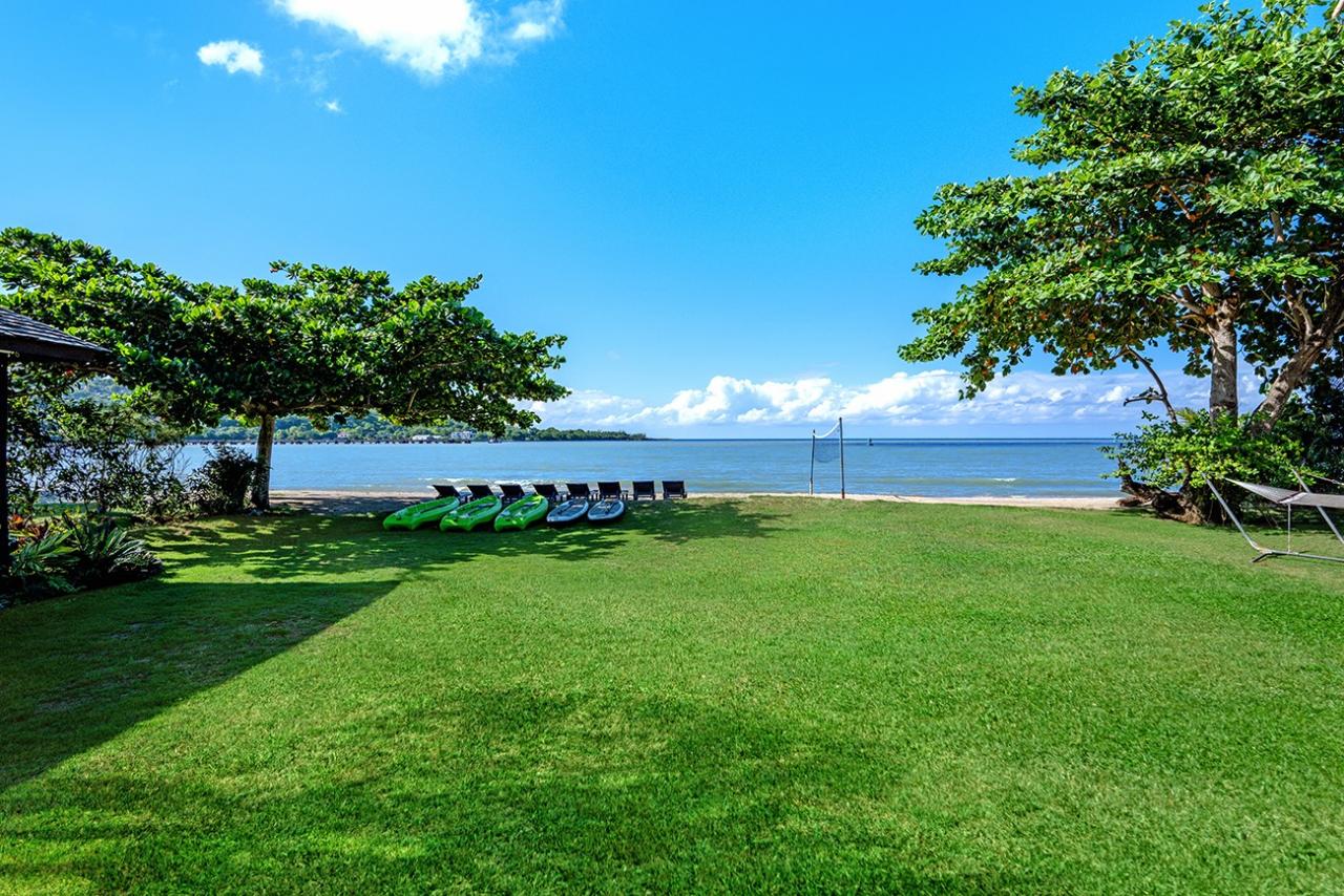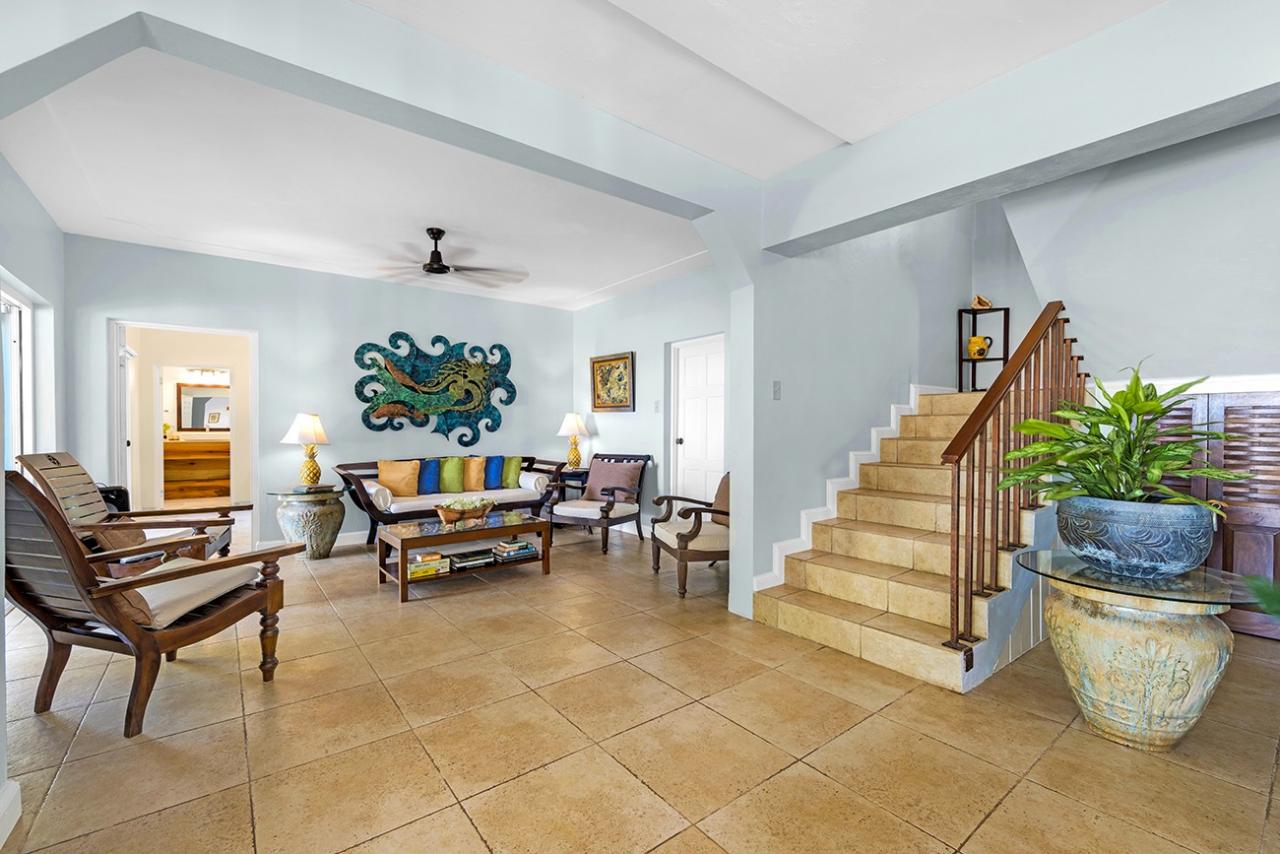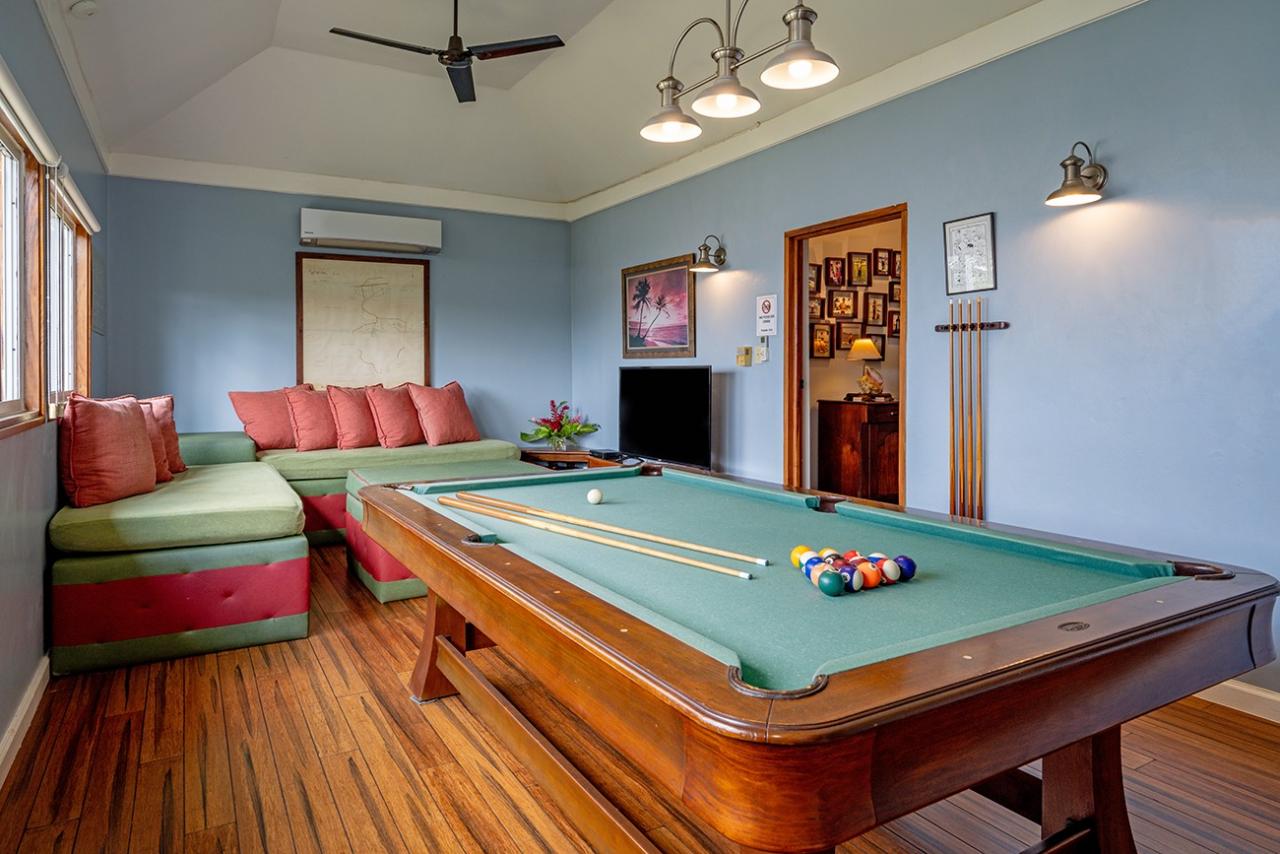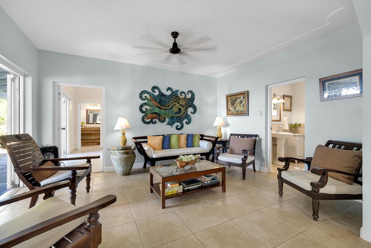 Sleepy Shallows is a beautiful villa in Jamaica. This Jamaica vacation rental sits on a grassy lawn that stretches down to the white sandy beach and the waters of Bengal Bay. Sleepy Shallows gives guests a place to embrace outdoor living with multiple places to sit and relax, read a book, or enjoy with friends and family. On the ground level, there is one bedroom, and there are four more bedrooms and a game room equipped with a TV and a pool table. There is plenty of seating and dining areas along with a gazebo near the pool with sofas and a hammock to enjoy the beachfront. Enjoy the white sand beach of Sleepy Shallows.
