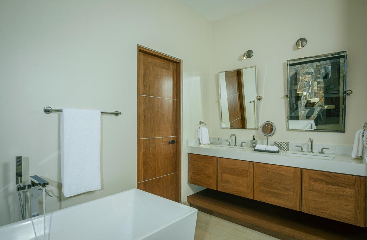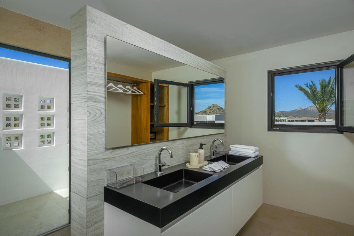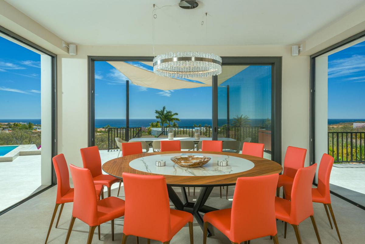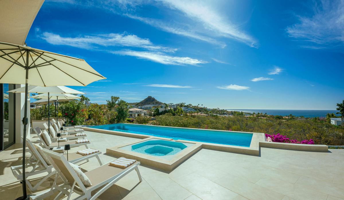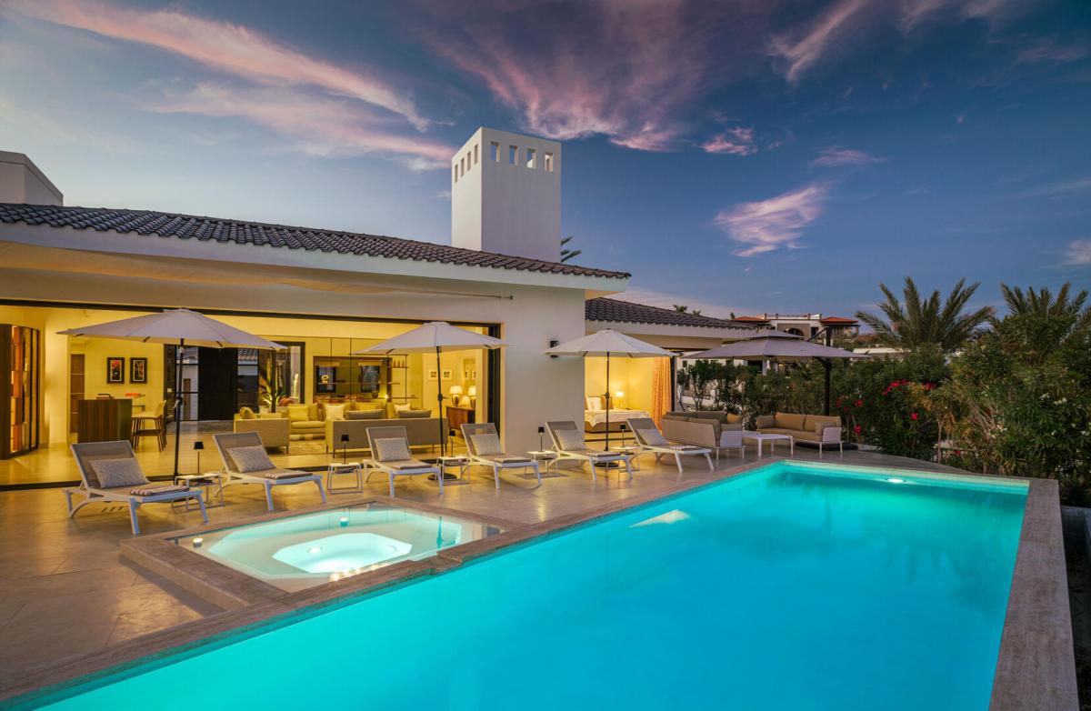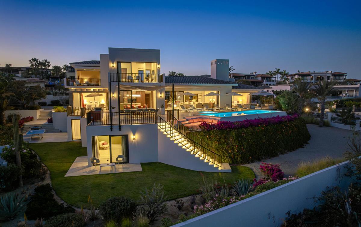 Casa Alba is also an entertainer’s paradise. Guests can enjoy a gourmet kitchen with top-of-the-line appliances, a circular dining table for 12, and a fully stocked bar with Sonos sound system. Outdoor spaces include a large terrace with a second 12-seater dining area, an outdoor kitchen, a heated pool, jacuzzi, and recreational games. Accessibility is thoughtfully integrated into the design, and a private chef can be arranged for a bespoke dining experience. With access to a beach club, gym, gourmet dining, and nearby championship golf courses, Casa Alba offers a perfect blend of relaxation, sophistication, and fun for your next Cabo vacation