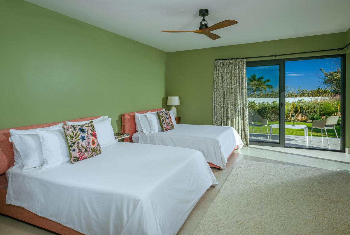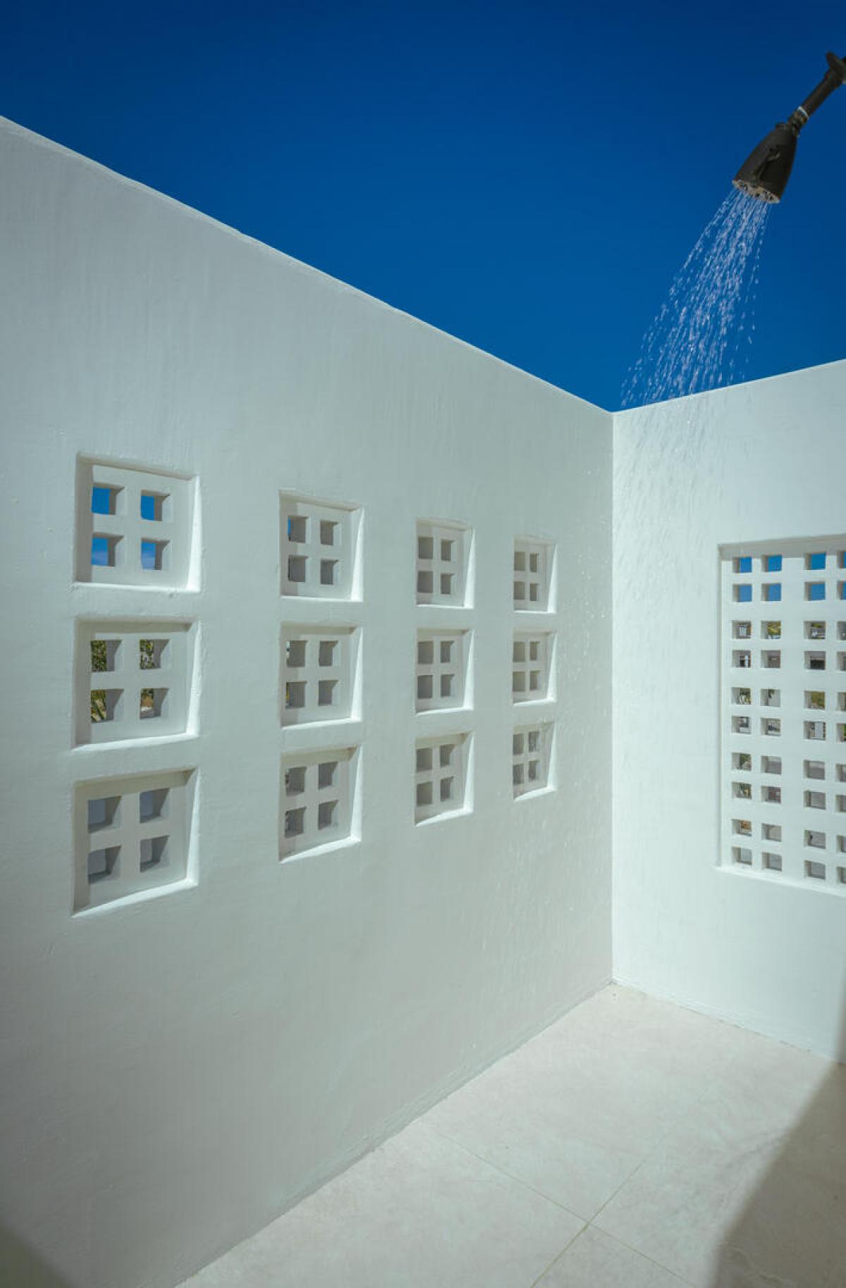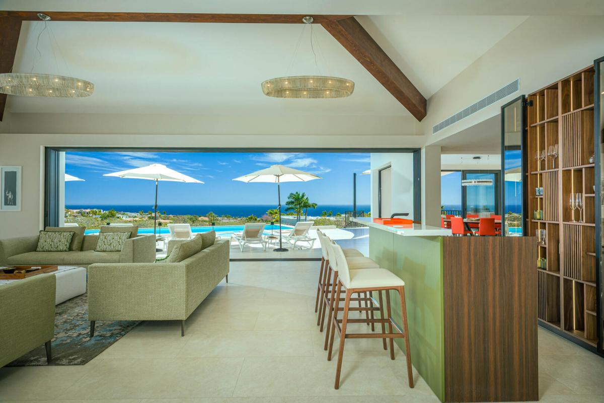 The villa features six beautifully designed bedrooms, five of which offer sweeping ocean views. Accommodating up to 12 guests, Casa Alba’s interiors showcase a refined sense of luxury, with custom Italian-made kitchen and bar, as well as hand-selected European furnishings and lighting. The bedrooms are styled with crisp white linens and soft, earthy tones, and include upscale features like digital TVs, smart speakers, and outdoor showers in select rooms. The open-plan layout seamlessly connects indoor and outdoor living, with large sliding glass doors allowing fresh ocean breezes and natural light to fill the space.