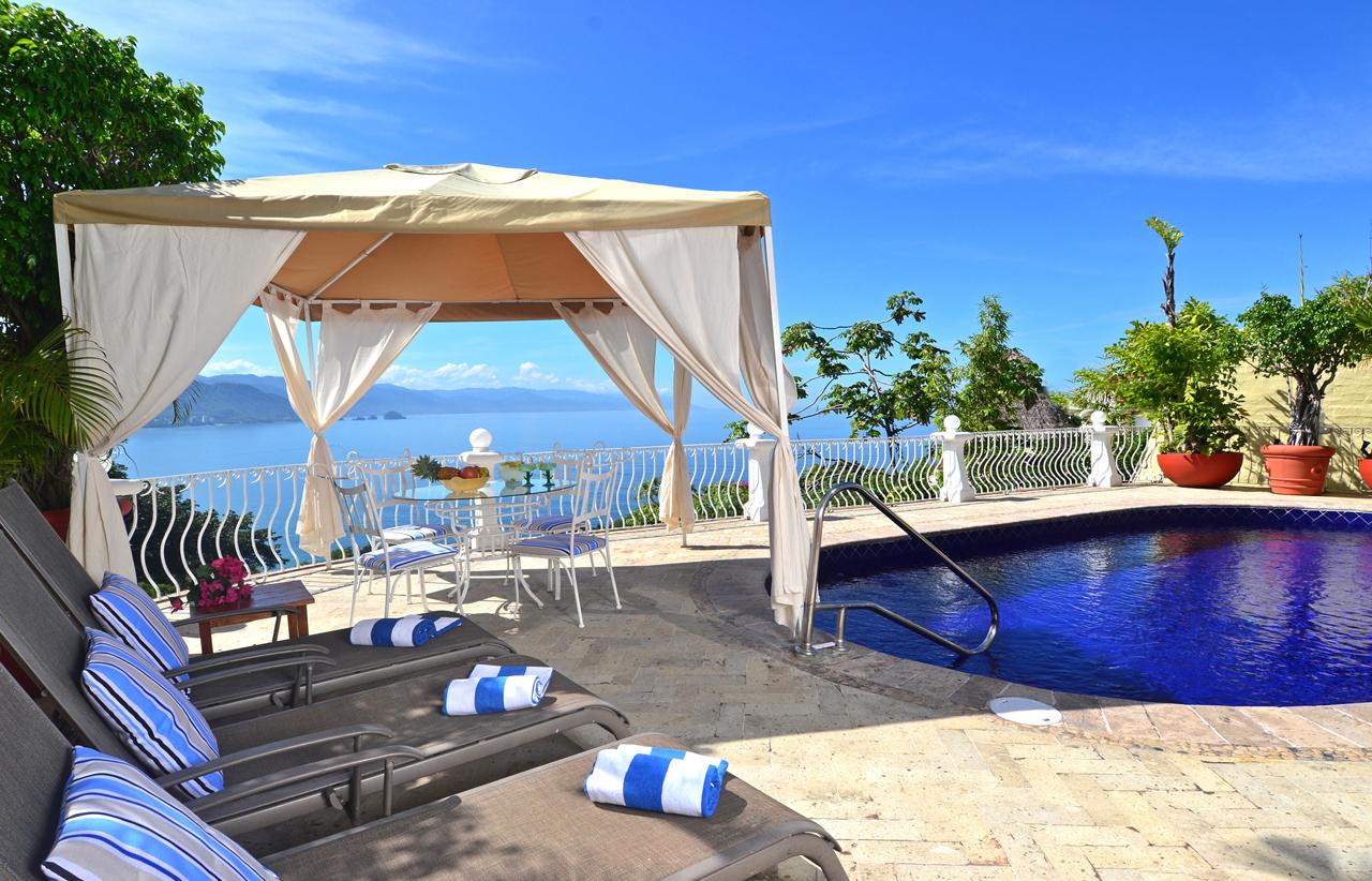 A spectacular 6 bedroom villa set on a quiet cul de sac in upper Conchas Chinas, Casa Aventura is within a short walk to the beach and only a 5 minutes drive from the charm and energy of downtown Puerto Vallarta. Casa Aventura is a multilevel 7000 sq. ft villa that has breathtaking views of the rugged jungle covered south coast including Los Arcos. Casa Aventura includes 3 separate living areas and with multiple terraces. There is space and privacy even for large groups. Casa Aventura is child friendly and welcomes events such as weddings and special celebrations. The main level has a large heated pool and a lower terrace has a large jacuzzi. Casa Aventura is decorated in a sophisticated contemporary style with splashes of color and Mexican artisania, surrounded by lush tropical flowering gardens.